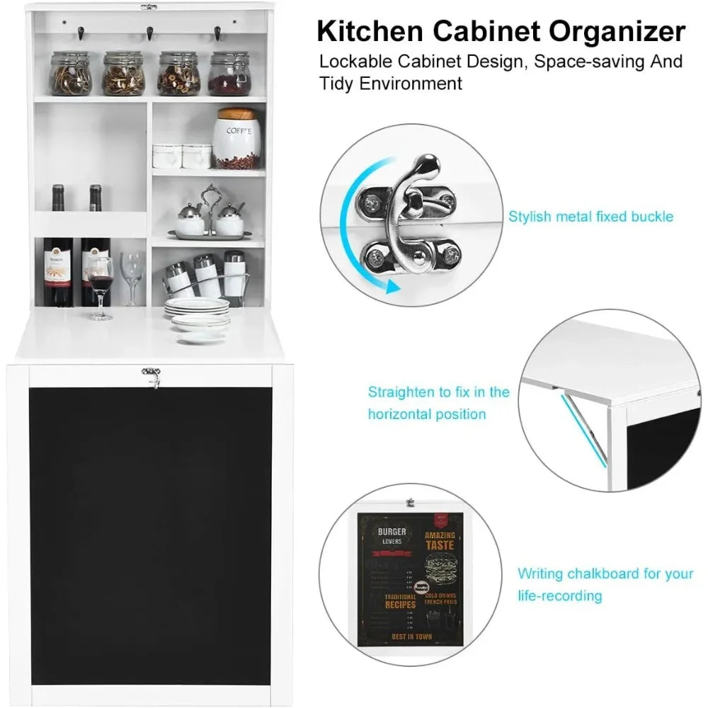 Folding Wall Mounted Desk with Storage Shelves and Hooks for Small Spaces