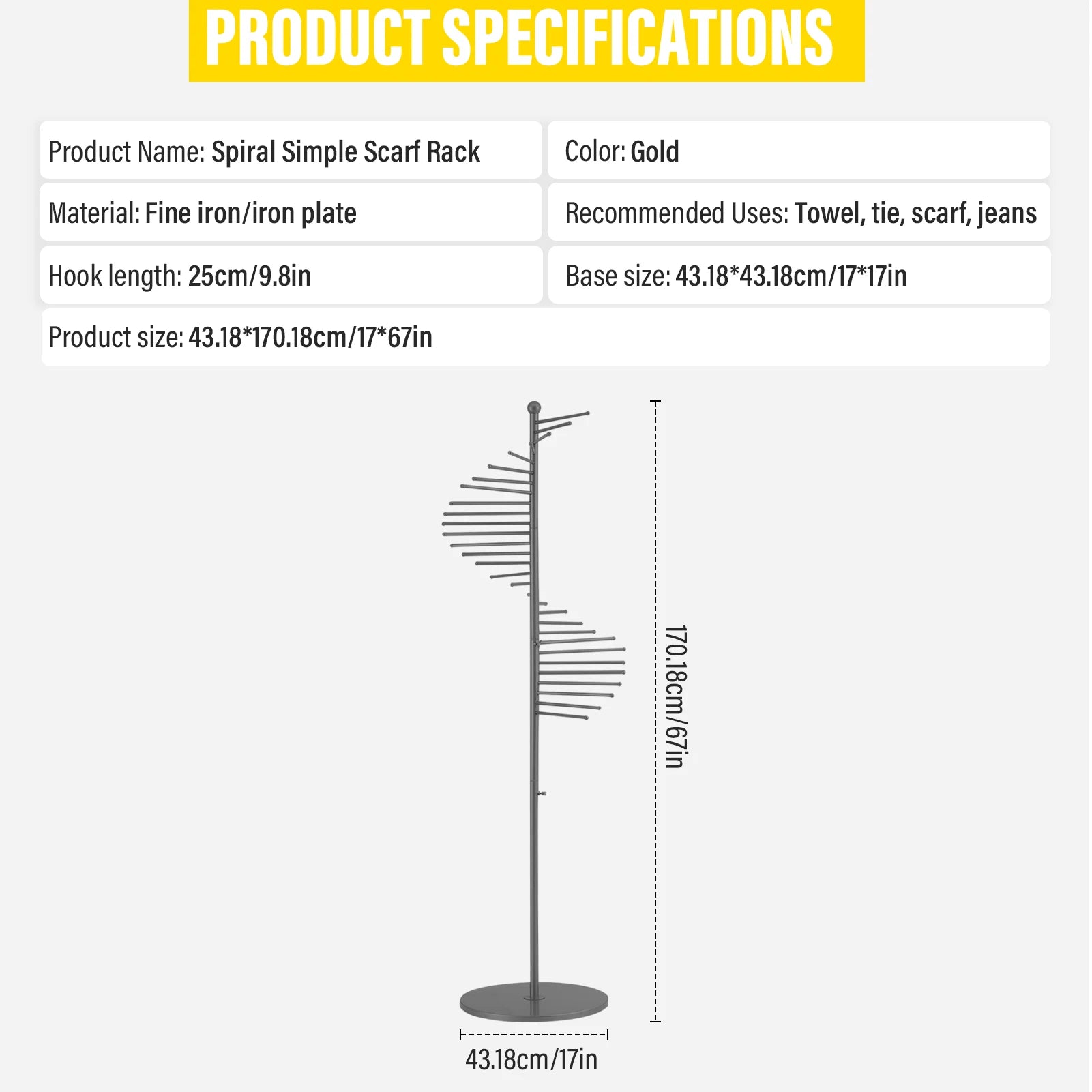 With its stylish spiral design, this scarf holder not only organizes your accessories but also serves as a chic decor piece. Keep your items scratch-free and within reach while enhancing the aesthetic of your living space. Perfect for living rooms, bedrooms, or entryways!