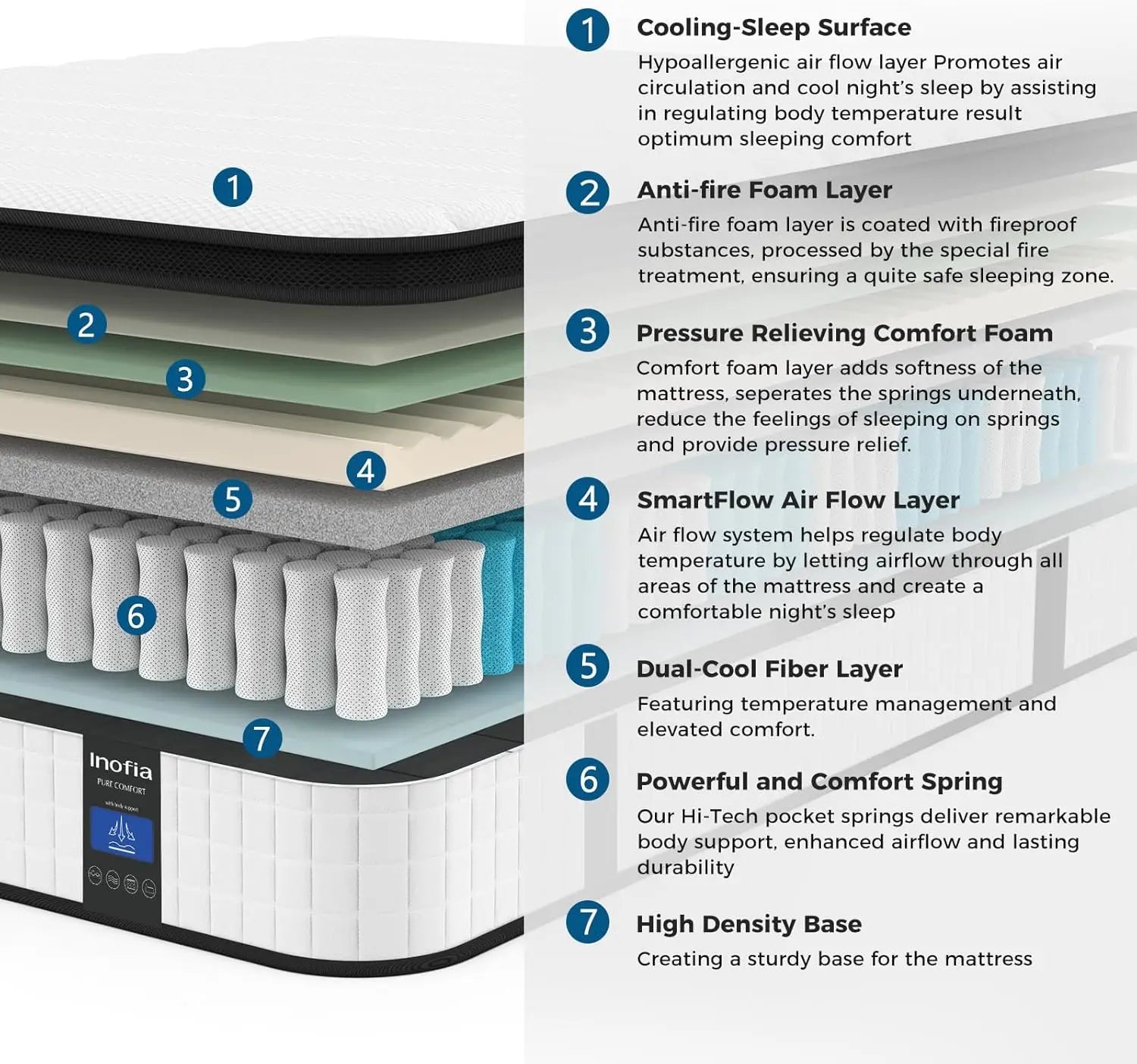 Transform your sleep with the Ljustra Full Mattress, designed for unparalleled comfort and support. This 10-inch hybrid innerspring mattress combines advanced technology with luxurious materials to enhance your sleeping experience.