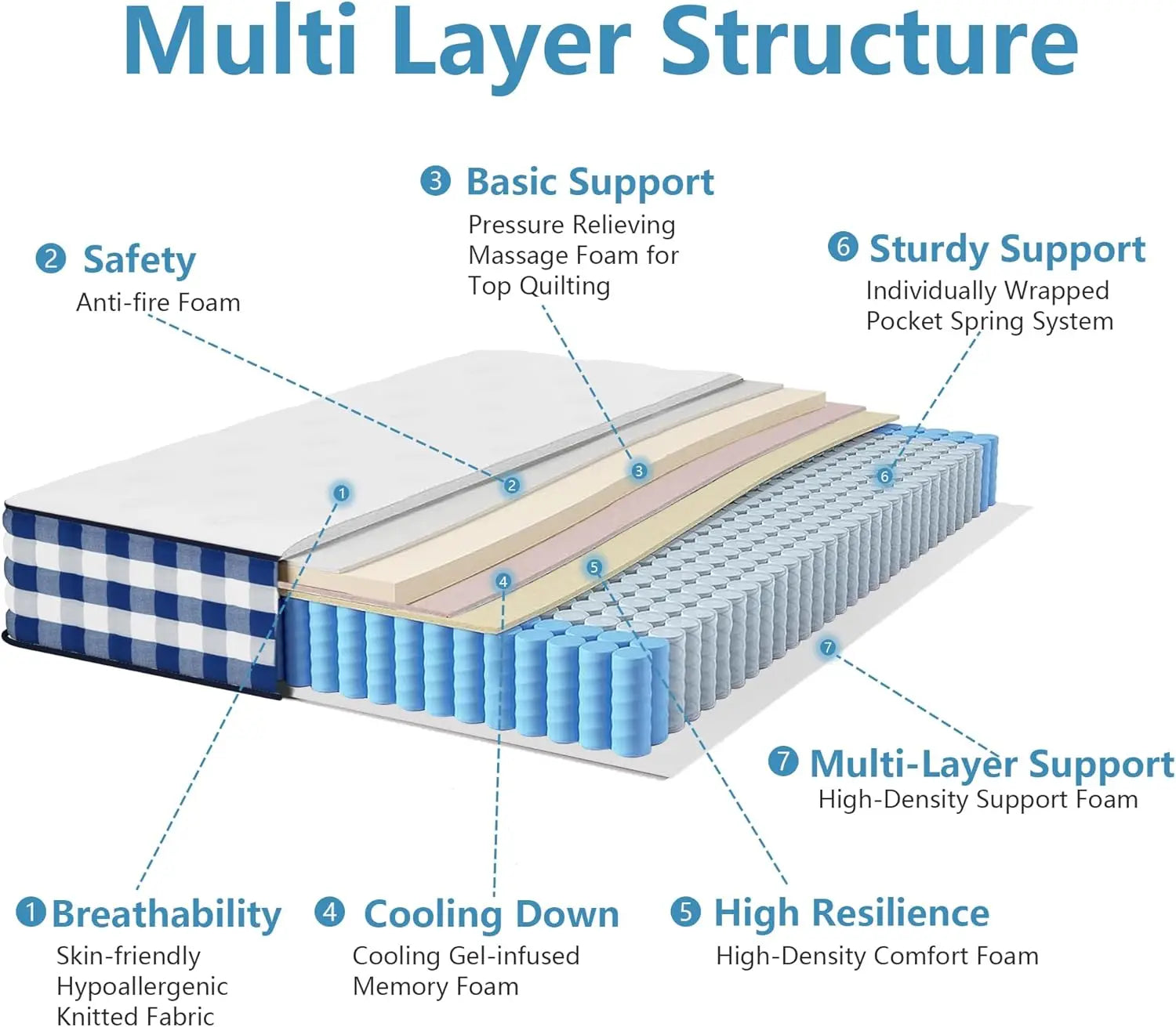- Pressure-Relieving Comfort: Crafted with gel memory foam and hundreds of individually pocketed springs, our mattress relieves pressure points on your shoulders, hips, and legs.