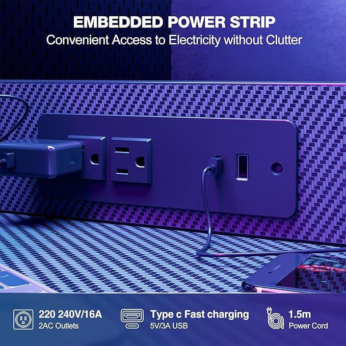 - Built-In Power Outlet: Equipped with two sockets, USB, and Type-C ports for quick and easy device charging.
