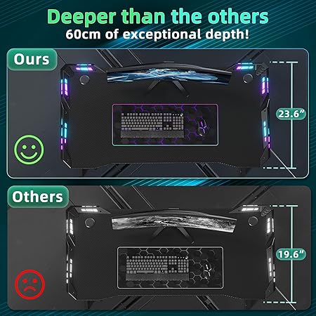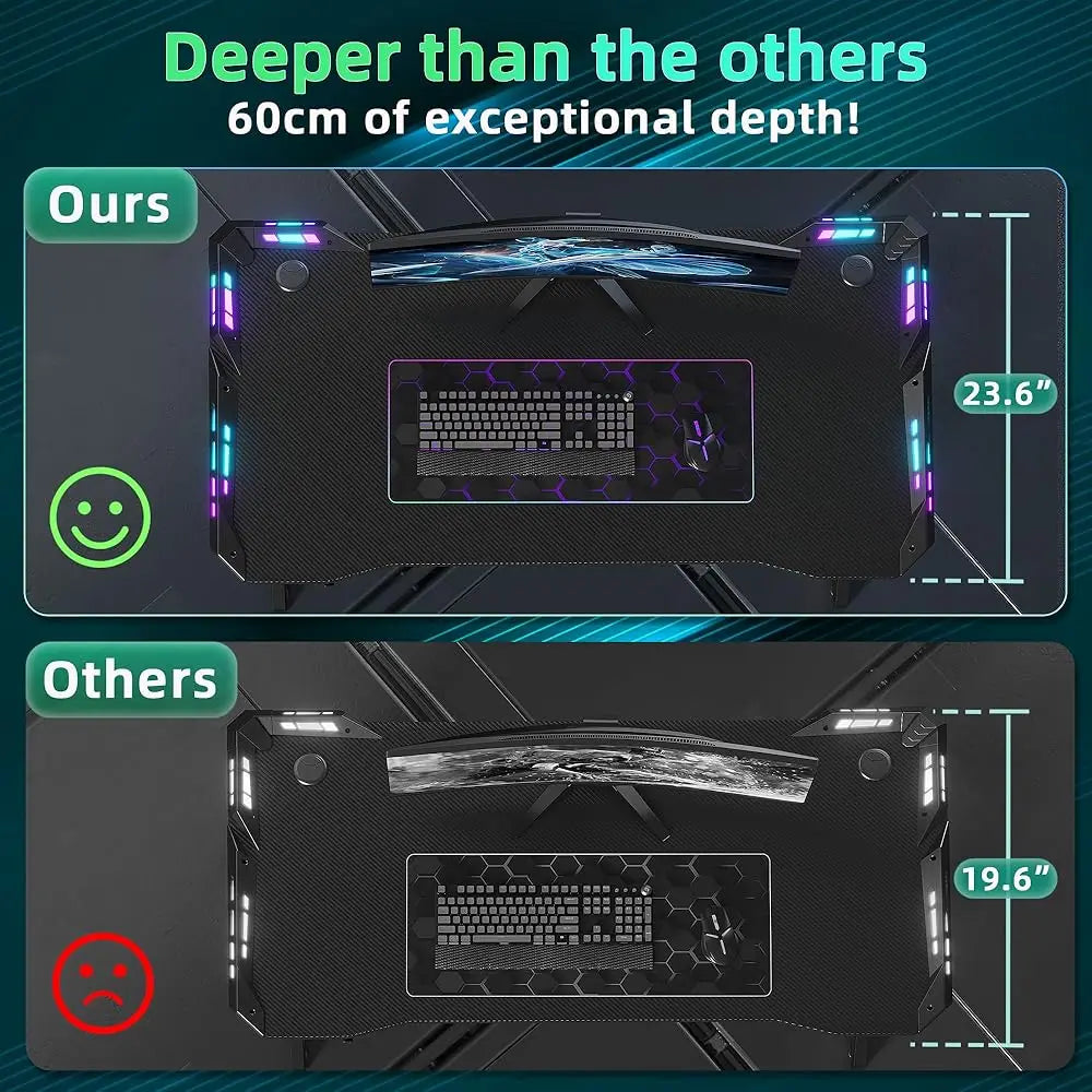- Top-Grade Material: Constructed with premium carbon fiber, this gaming desk is both elegant and durable, ensuring it withstands the rigors of intense gaming sessions.