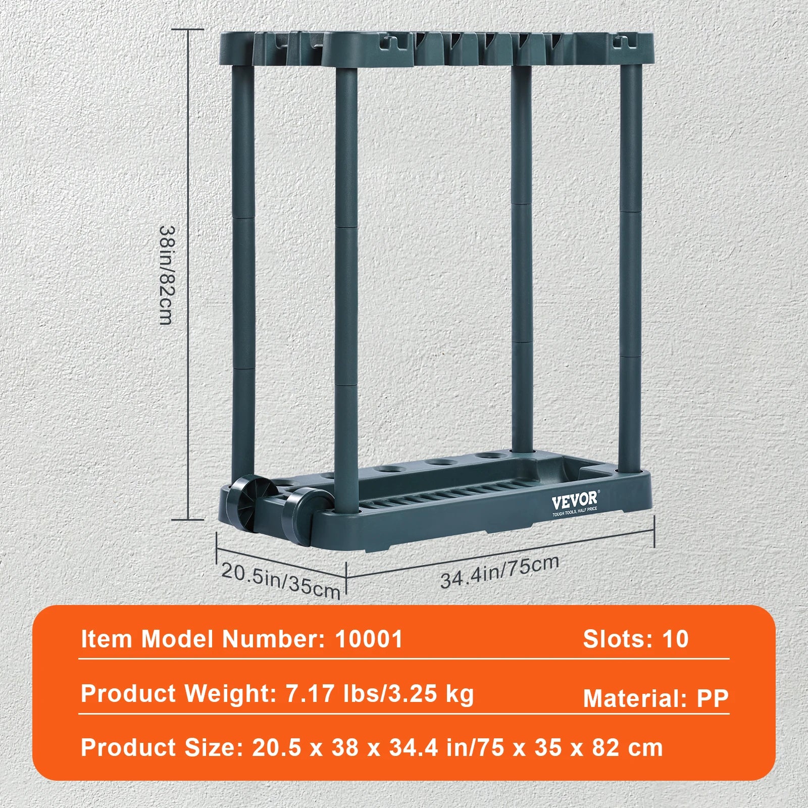 Ljustra 10 Slot Garden Tool Organizer Rack Storage Stand for Garage