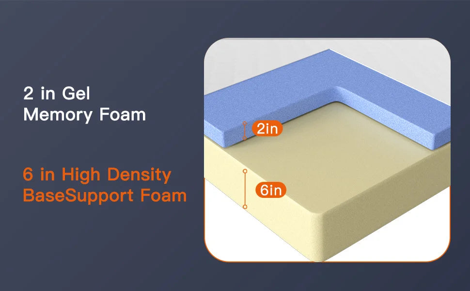 - Comfortable and Breathable: The gel memory foam supports your body evenly, allowing for a restful sleep.