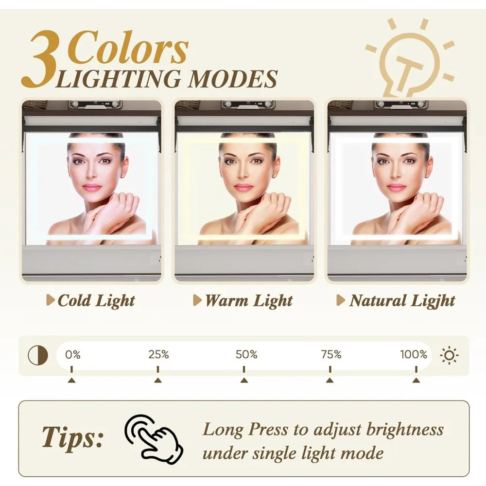- Adjustable Sliding Mirror: Features built-in LED lights with adjustable brightness and three color settings for all your beauty needs.