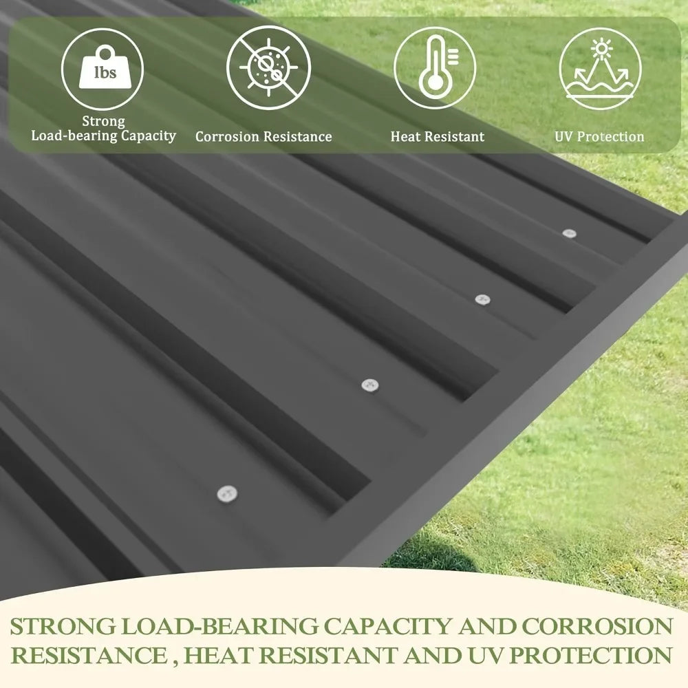- Durable Galvanized Steel Roof: The corrosion-resistant, heat-resistant, and UV-resistant roof is designed to withstand various weather conditions. The sloping design with gutters prevents water accumulation, ensuring longevity.