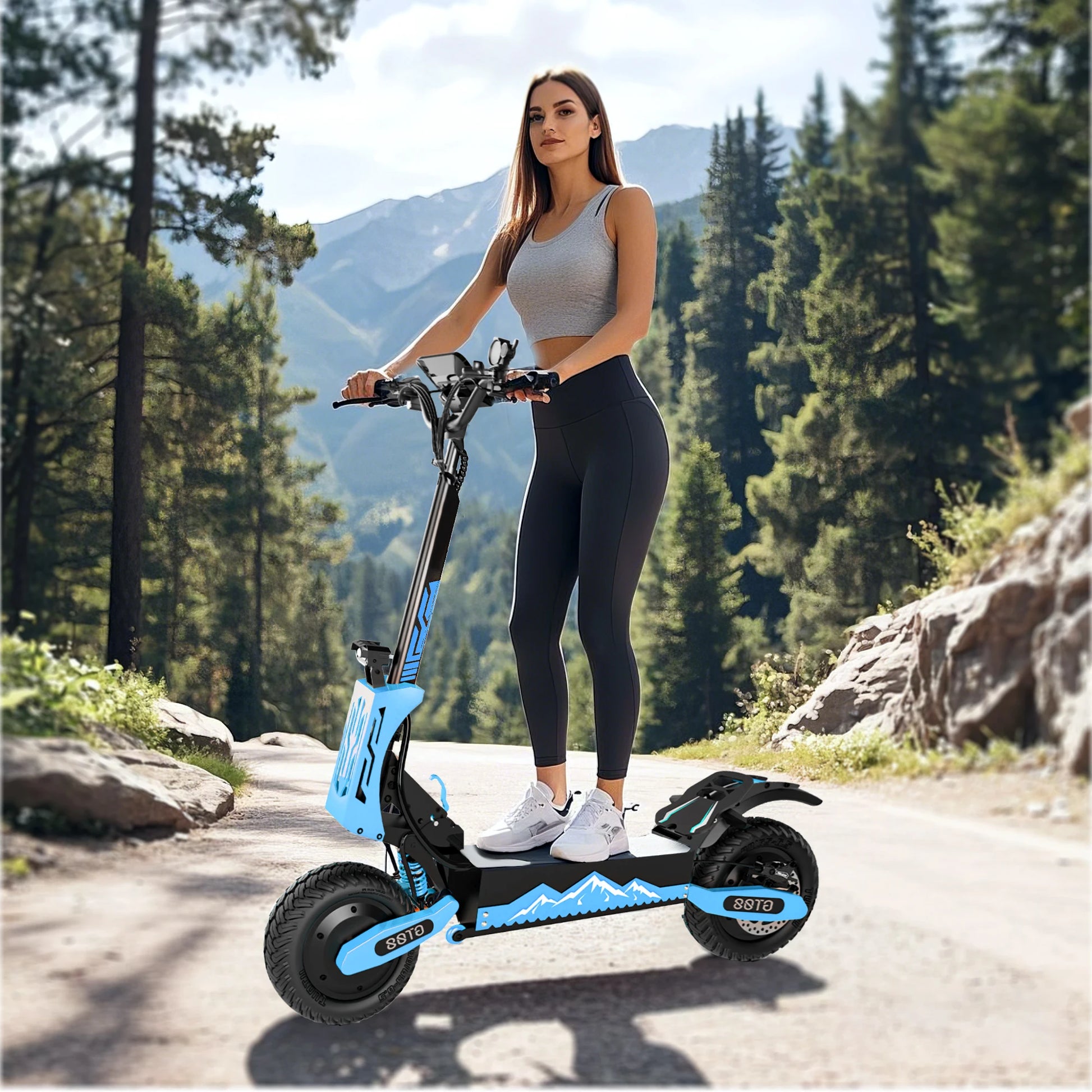 Experience the thrill of the ride with the Ljustra GT08 Electric Scooter, your ultimate companion for urban commuting and off-road adventures. Designed for speed and stability, this electric scooter is equipped with a powerful 5600W dual motor that conquers any terrain with ease.