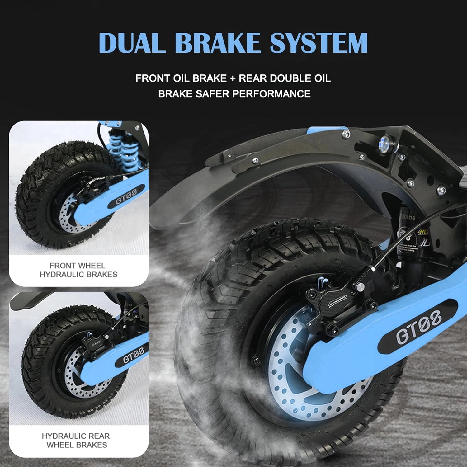 - Safety First: Dual braking system with front disc brakes and rear hydraulic brakes for maximum control and stability, even at high speeds.