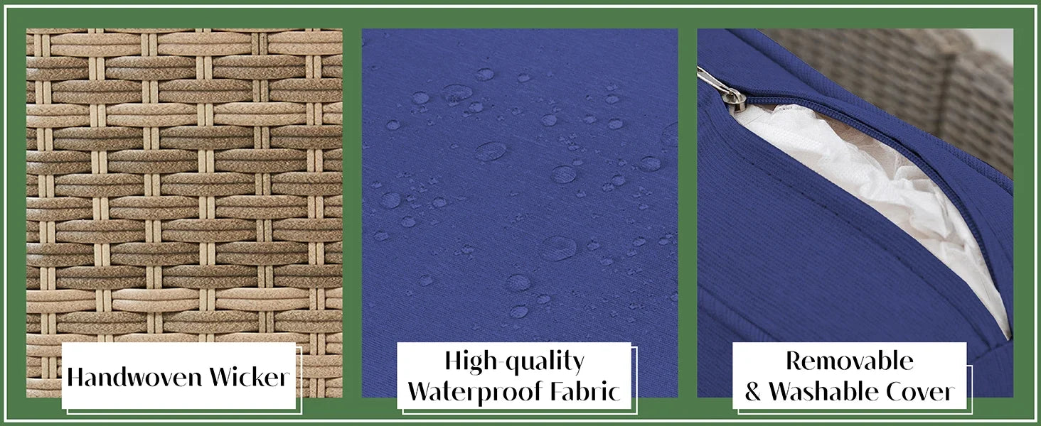 - Durability You Can Trust: Constructed with sturdy metal frames and hand-woven all-weather PE rattan, ensuring long-lasting use.