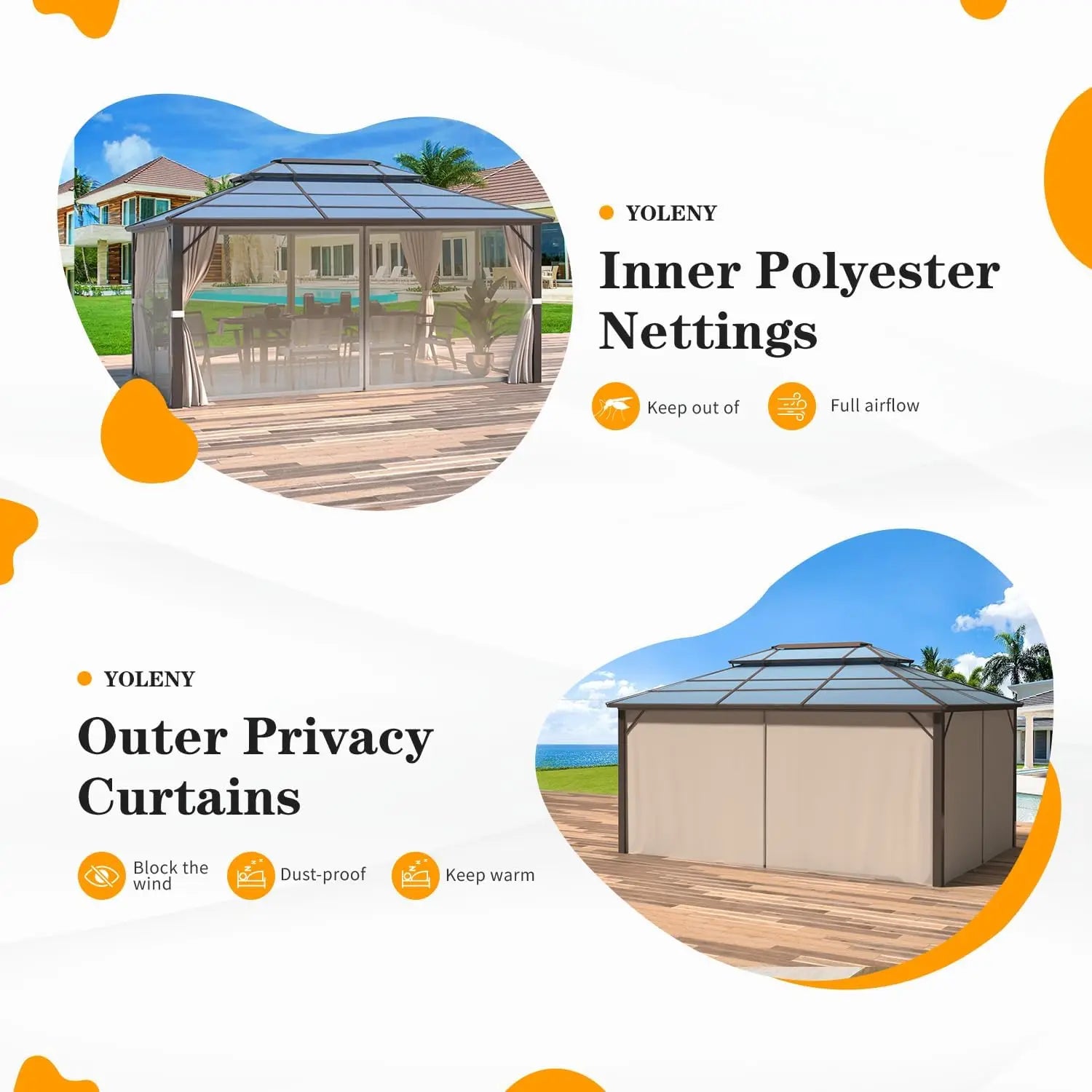 - Includes Mesh & Privacy Curtains: The gazebo comes with a double-track system for easy sliding curtains, providing UV protection and maintaining airflow.
