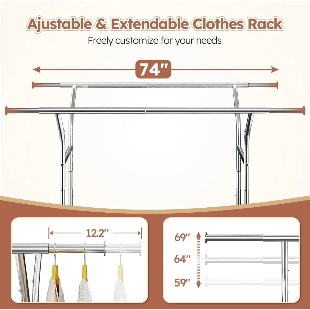 Heavy Duty Double Rod Clothing Rack with Wheels 630LBS Capacity