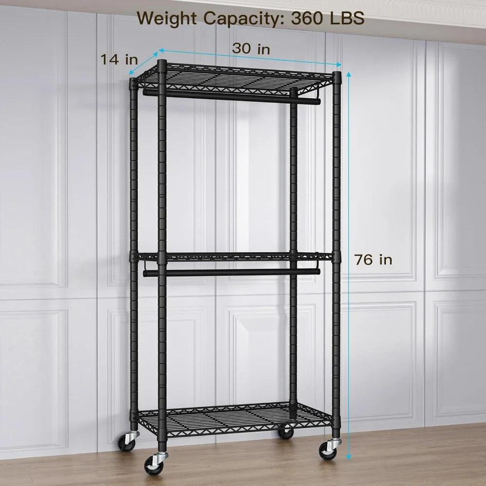 Heavy-Duty Portable Closet Garment Rack Adjustable Shelves 76 Inch