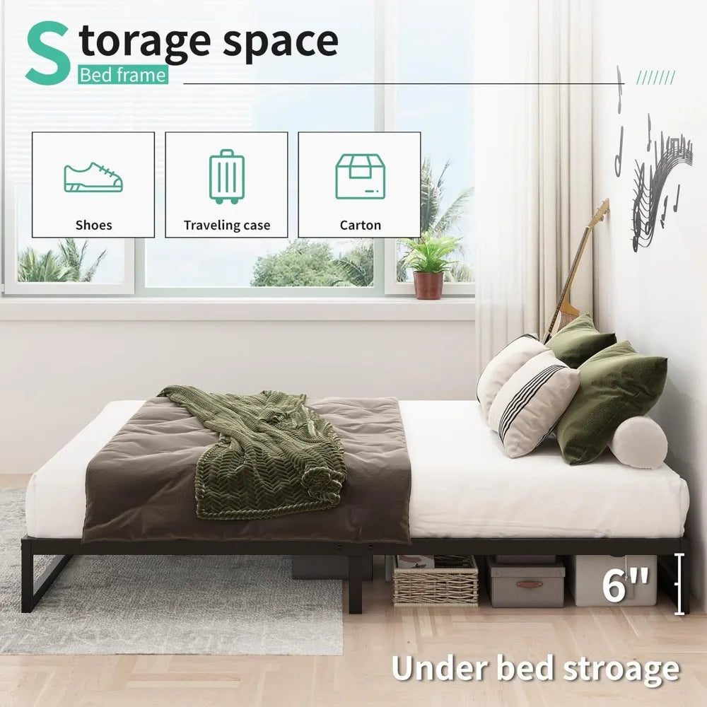 Heavy Duty 8 Inch Queen Bed Frame Metal Platform No Box Spring Needed