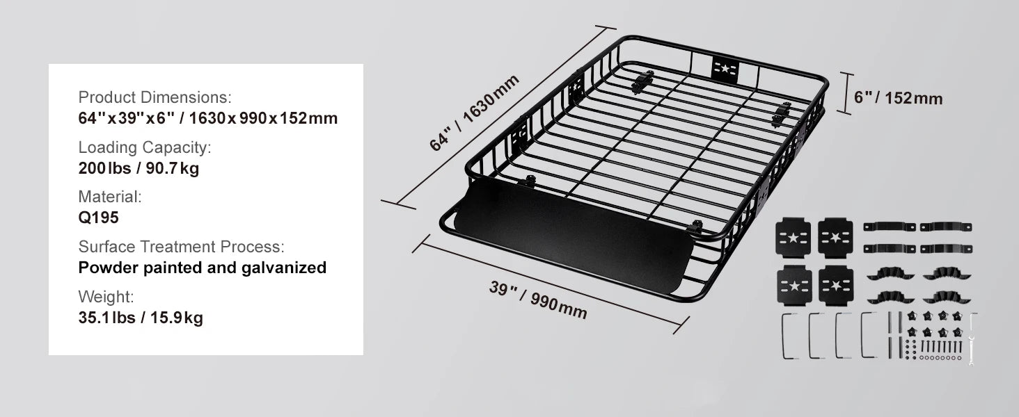 Ljustra Heavy-Duty Roof Rack Cargo Basket 200LBS Capacity SUV Truck