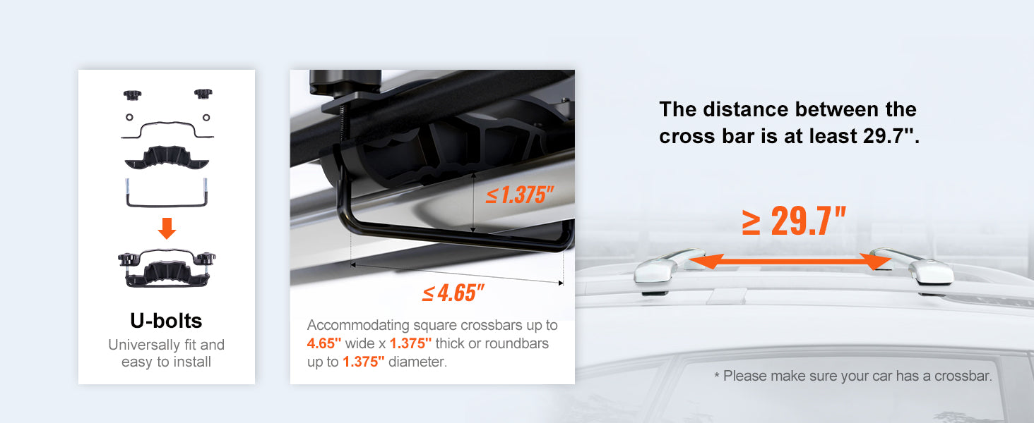 - Universal Fit: Easy installation with 4 U-bolts compatible with most crossbars.