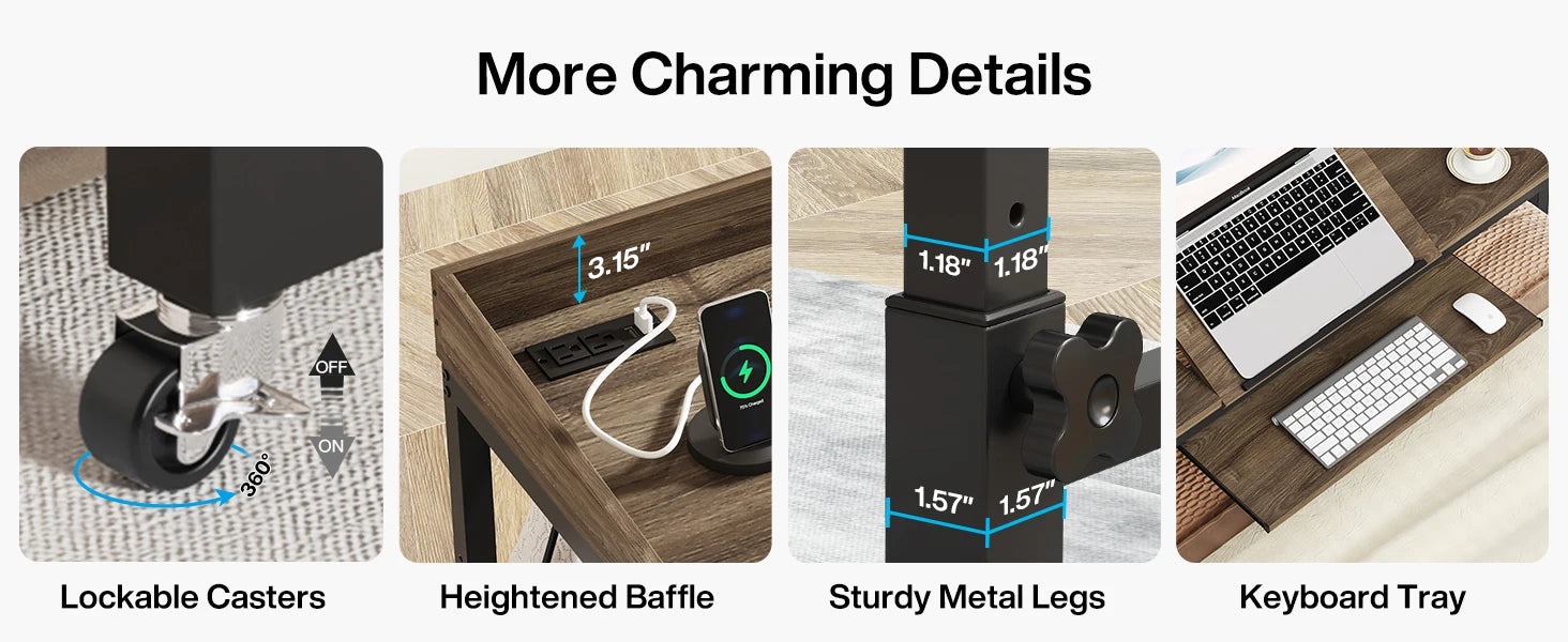 - Spacious Desktop: Generous dimensions of 70.87” L x 15.74” W provide ample space for laptops, tablets, books, and more.
