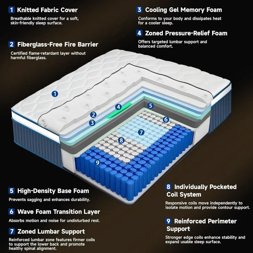 Transform your sleep with the Ljustra 14 Inch Medium Firm Hybrid Mattress, designed for ultimate comfort and support. This innovative mattress combines the best of both worlds—responsive memory foam and individually wrapped pocket springs—ensuring a restful night's sleep.