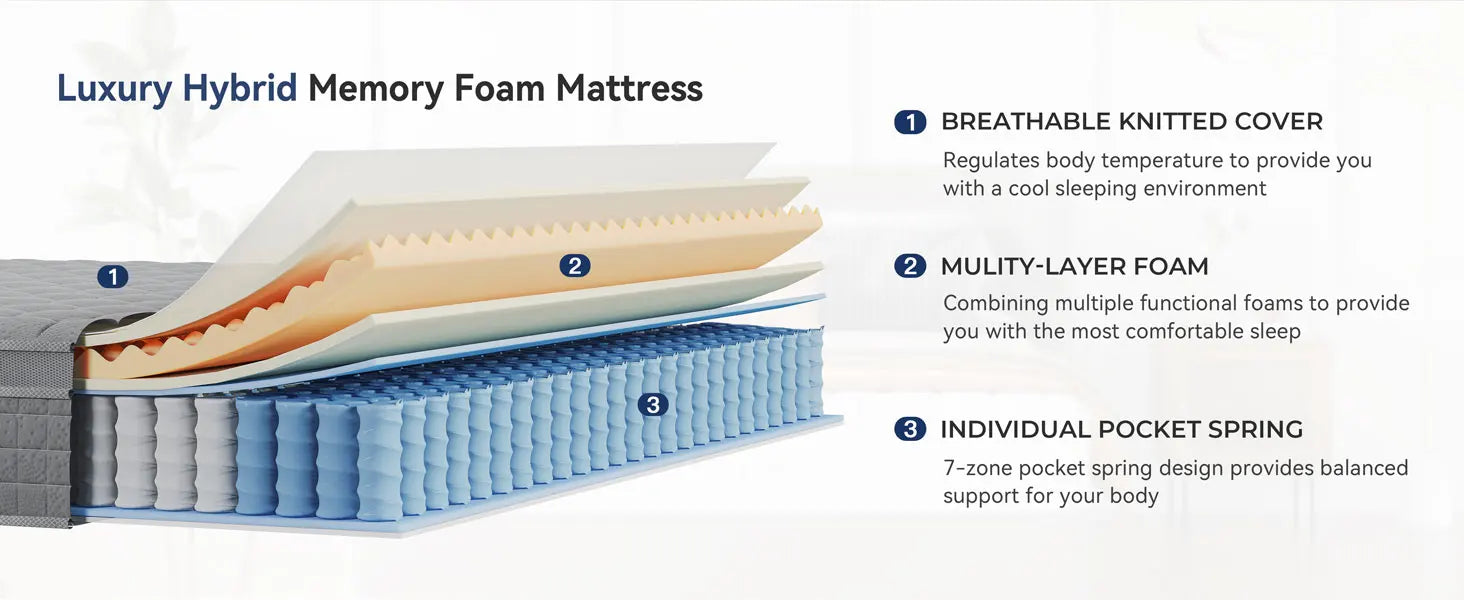 - Breathable and Healthy: The breathable knitted fabric cover and multiple foam layers enhance airflow, helping to keep you cool throughout the night.