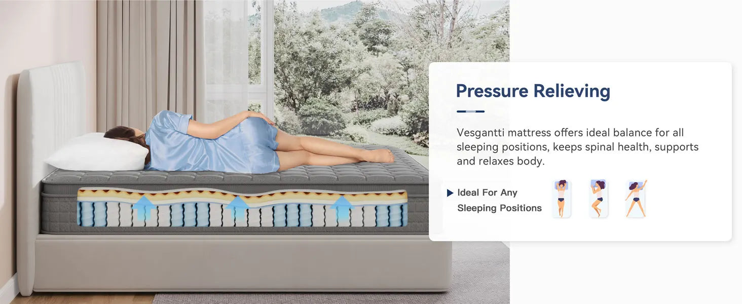 Transform your sleep with the Ljustra 12 Inch Hybrid Queen Mattress. Designed with a perfect blend of certified memory foam and 7-zone pocketed innerspring, this mattress offers the ideal support and comfort for every sleeper.