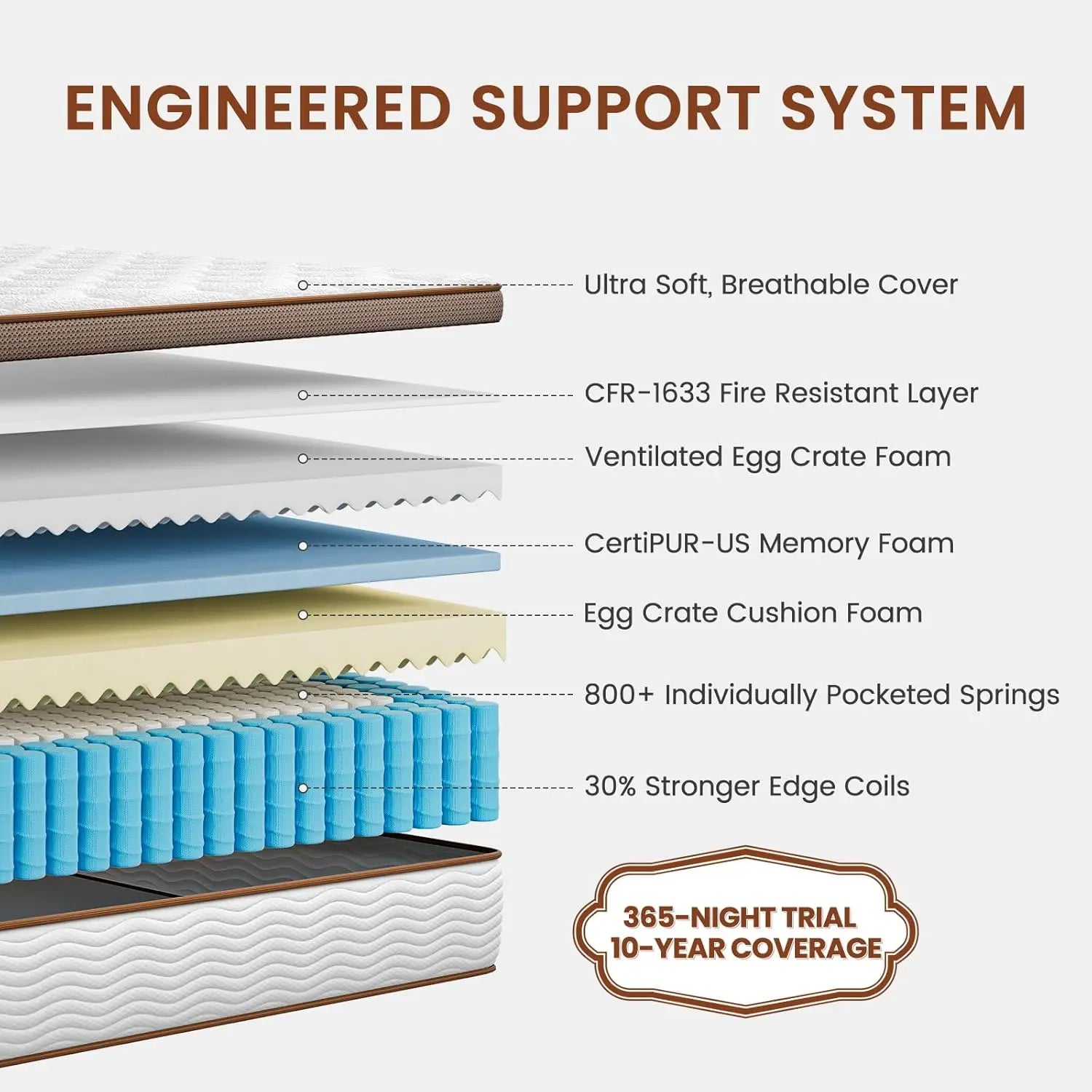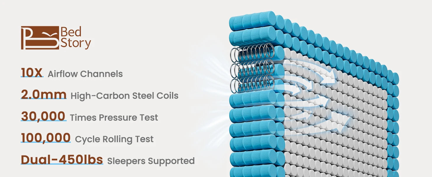 - Minimized Motion Transfer: Sleep soundly with individually wrapped coils that reduce motion transfer, ensuring undisturbed sleep.