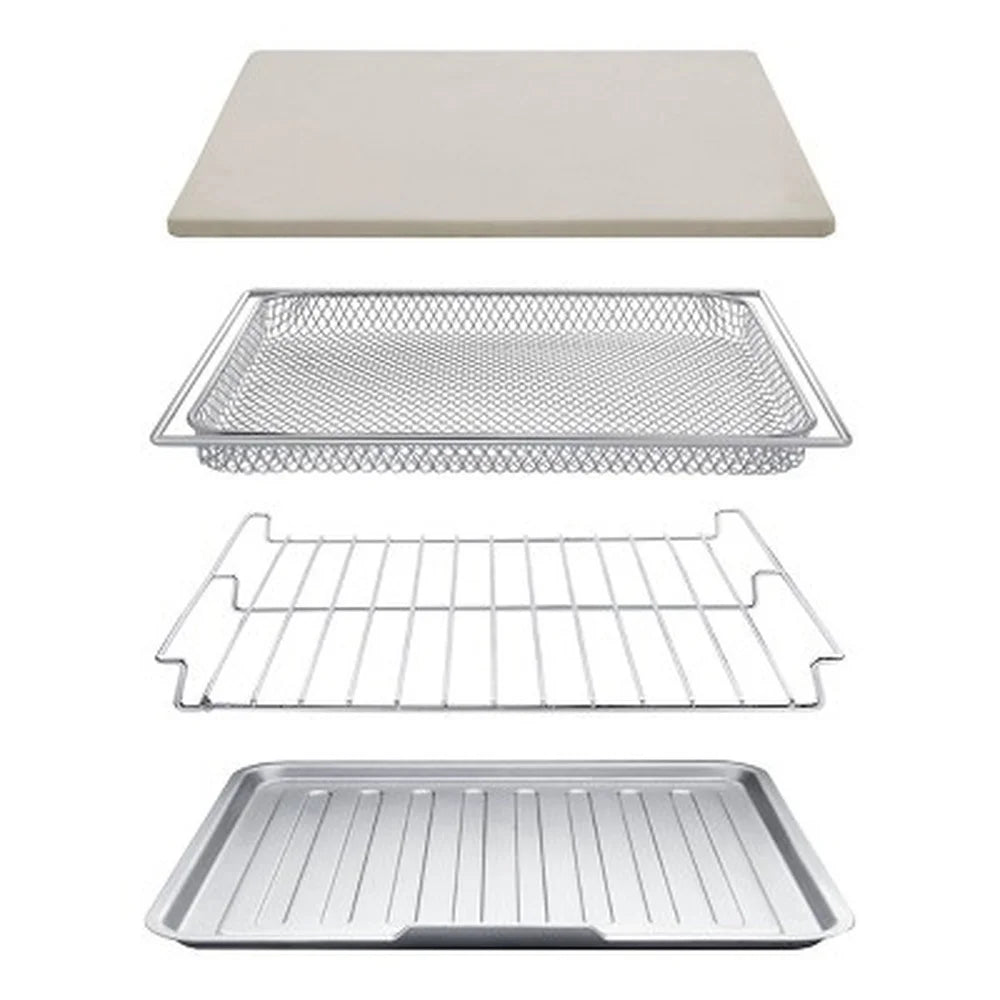- Dishwasher Safe Parts: Includes air fry basket, oven rack, and baking pan/drip tray for easy cleaning.