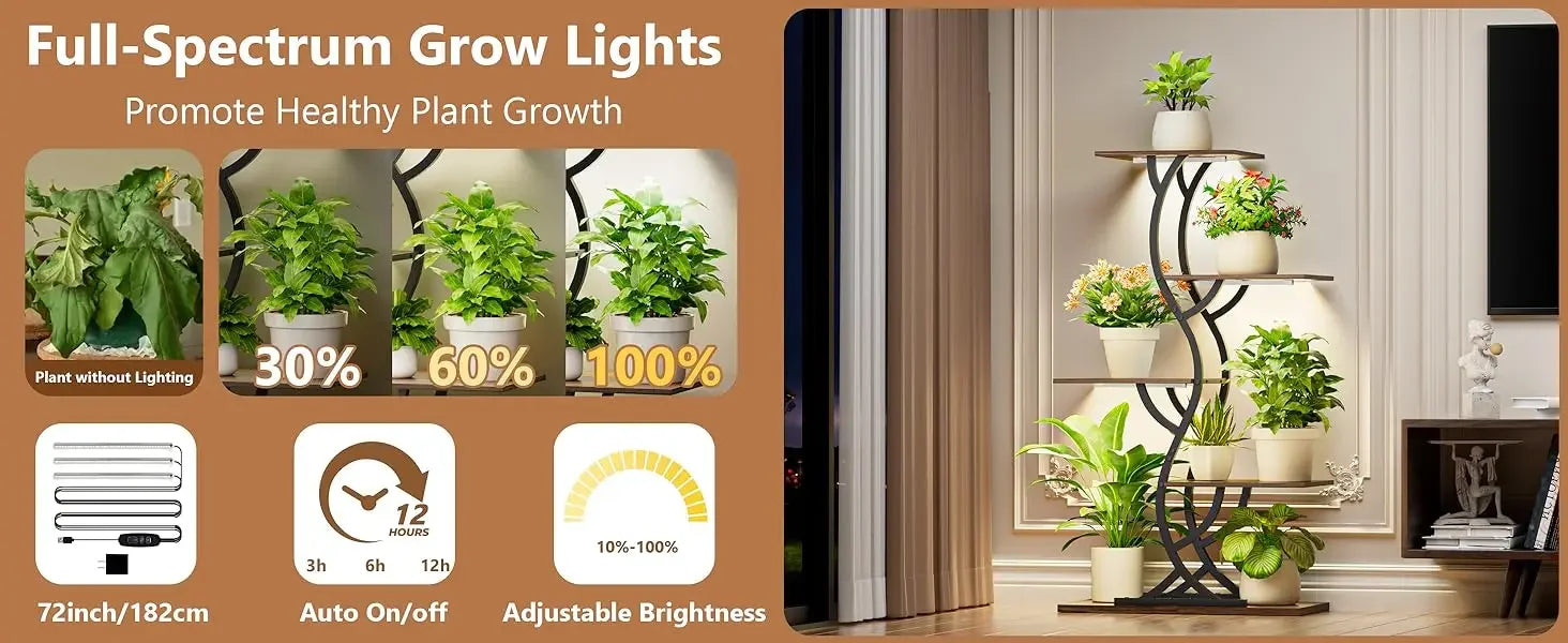 Discover the perfect blend of functionality and aesthetics with our Indoor Plant Stand with Grow Lights. This stylish 5-tiered metal shelf is designed to elevate your indoor gardening experience while adding a touch of elegance to your home.