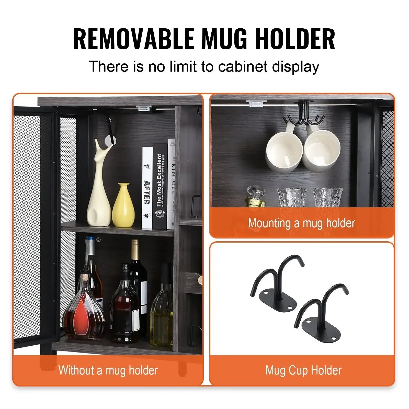 - More Space for You: Measuring 47x15.7x31.5 inches, this bar cabinet holds up to 222 lbs. Featuring an open storage compartment, a wine rack for 9 bottles, and hanging glass storage, it's perfect for any gathering.
