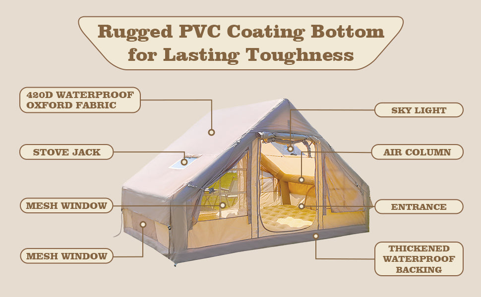 With its tear-resistant and waterproof construction, this inflatable tent is tested for 2 weeks without leakage, ensuring your comfort in any weather condition. Whether you're glamping or embarking on a rugged adventure, Ljustra's inflatable tent is your go-to solution for a hassle-free camping experience.