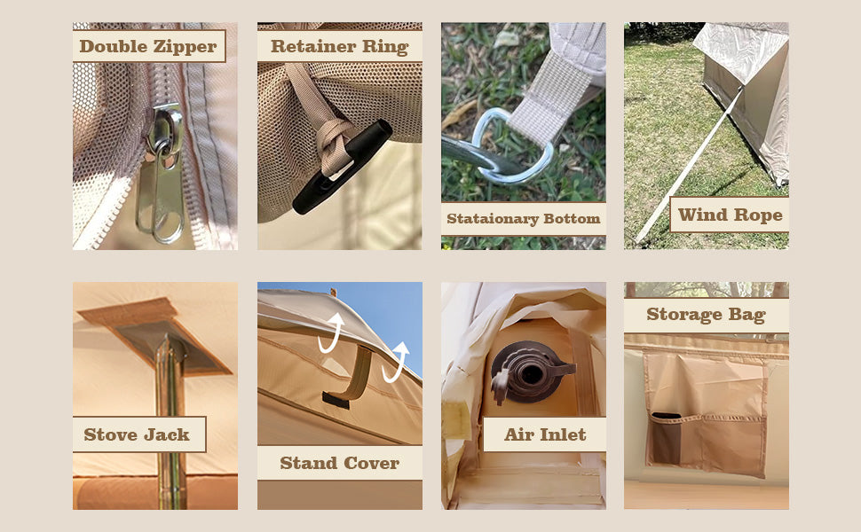 - Features: Two doors, four windows with mesh, and a stove jack for added warmth.