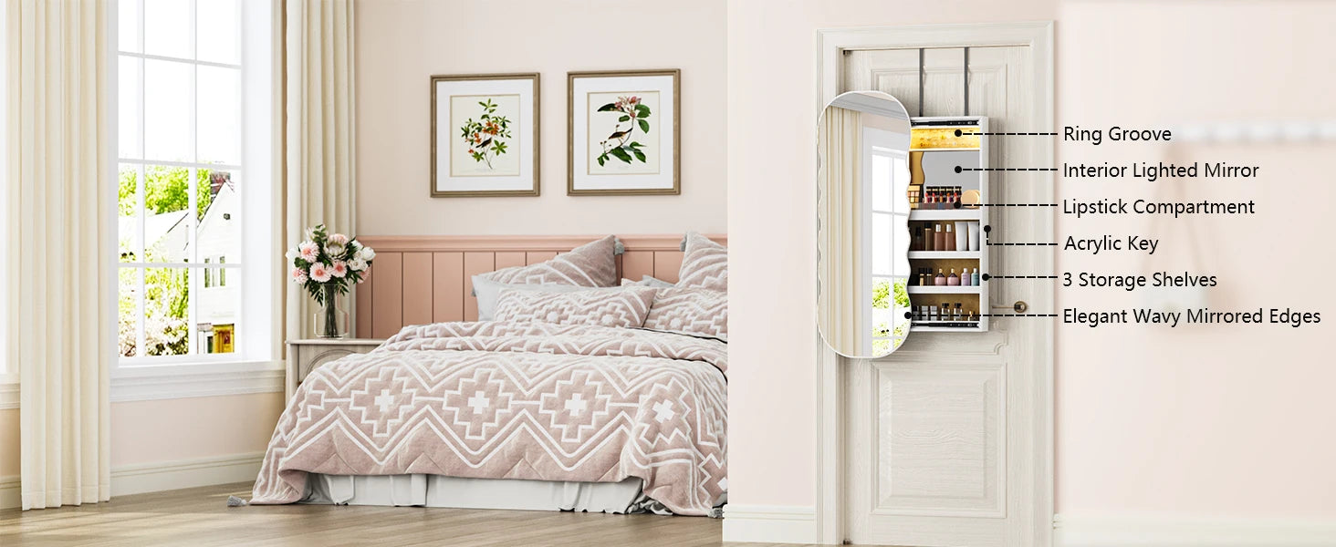 - Space-Saving Design: Easily mount on the wall or hang on a door, maximizing your floor space while keeping your jewelry organized.