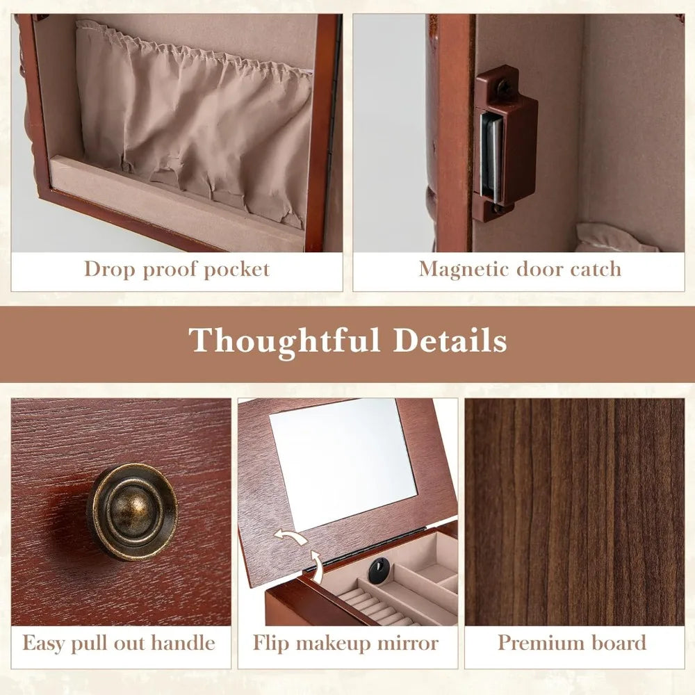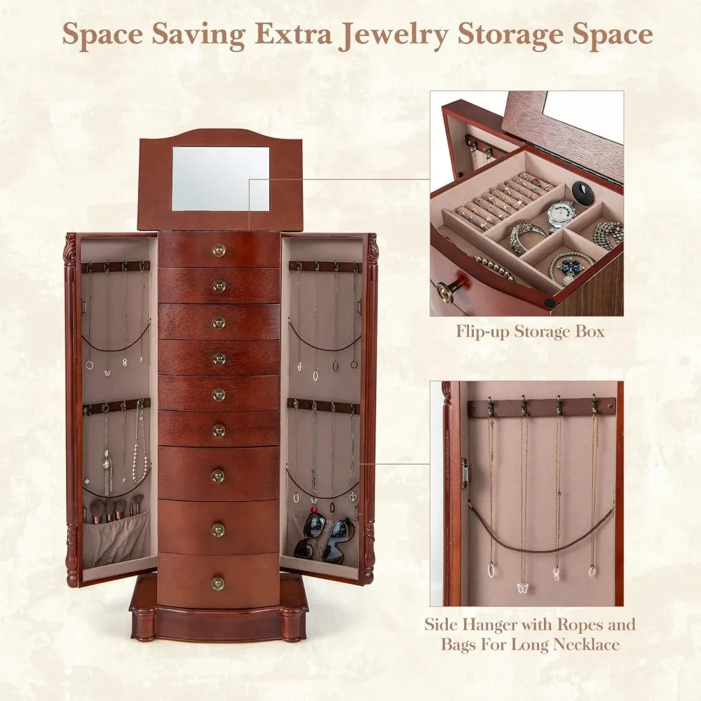 Jewelry Storage Cabinet with Flip Mirror 8 Drawers Side Doors Organizer