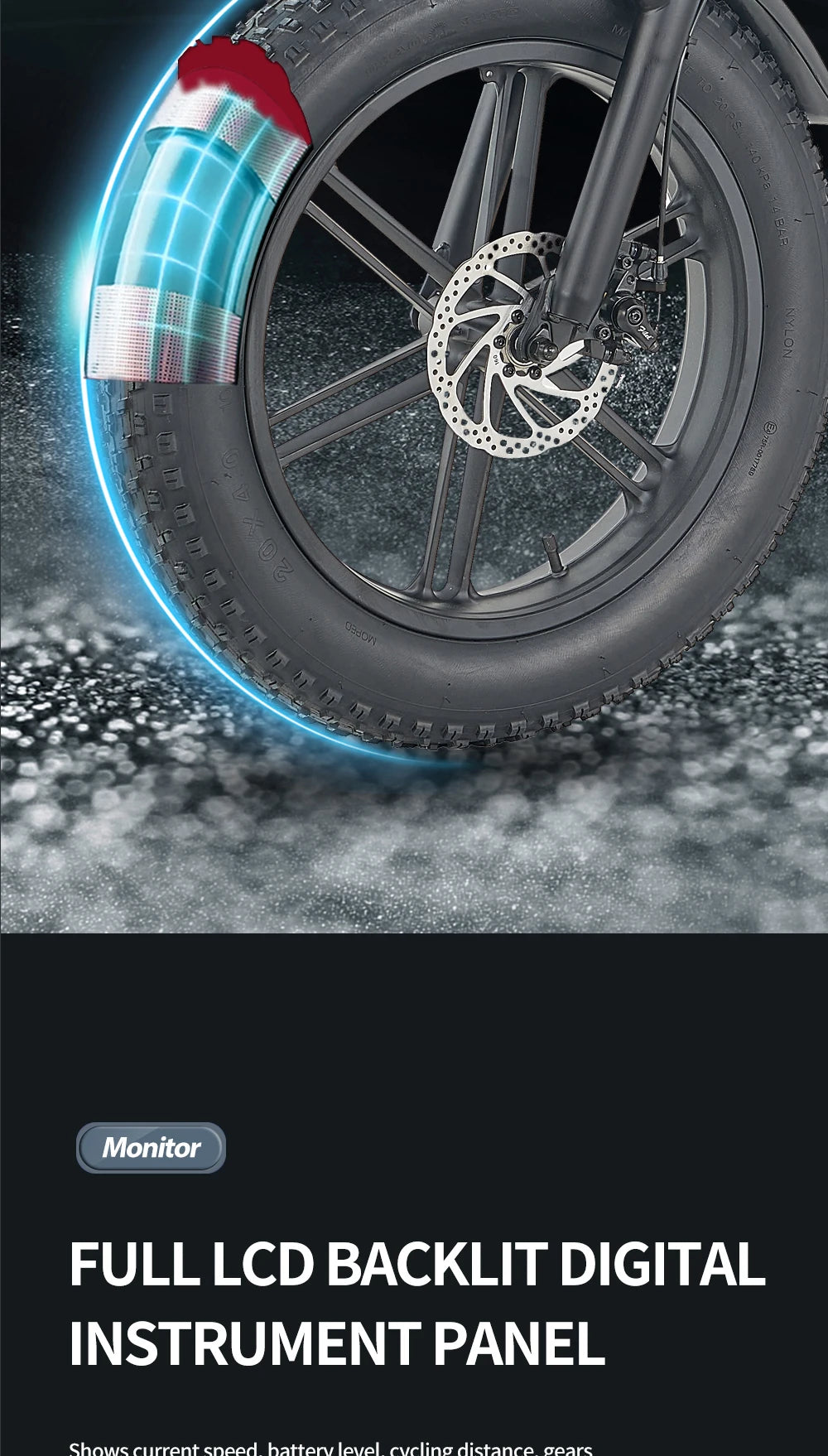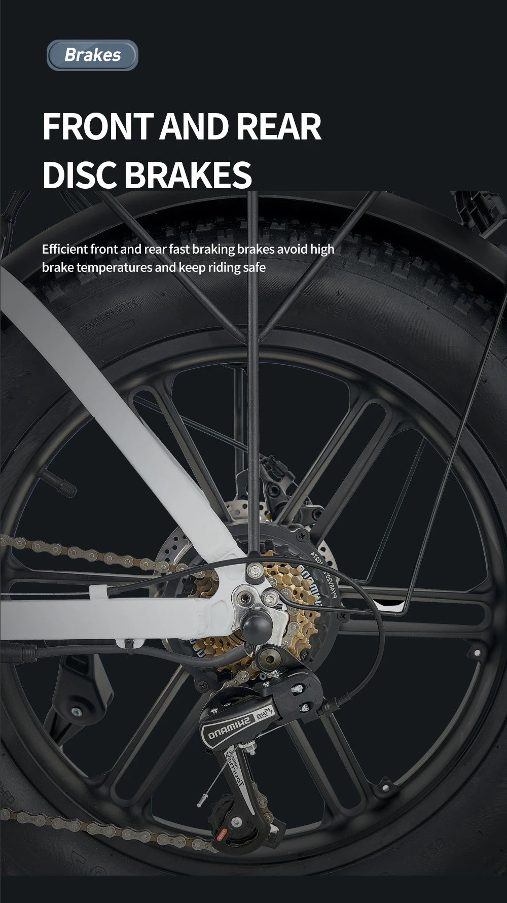 - Durable Fat Tires: 20-inch fat tires ensure stability and control on various terrains.