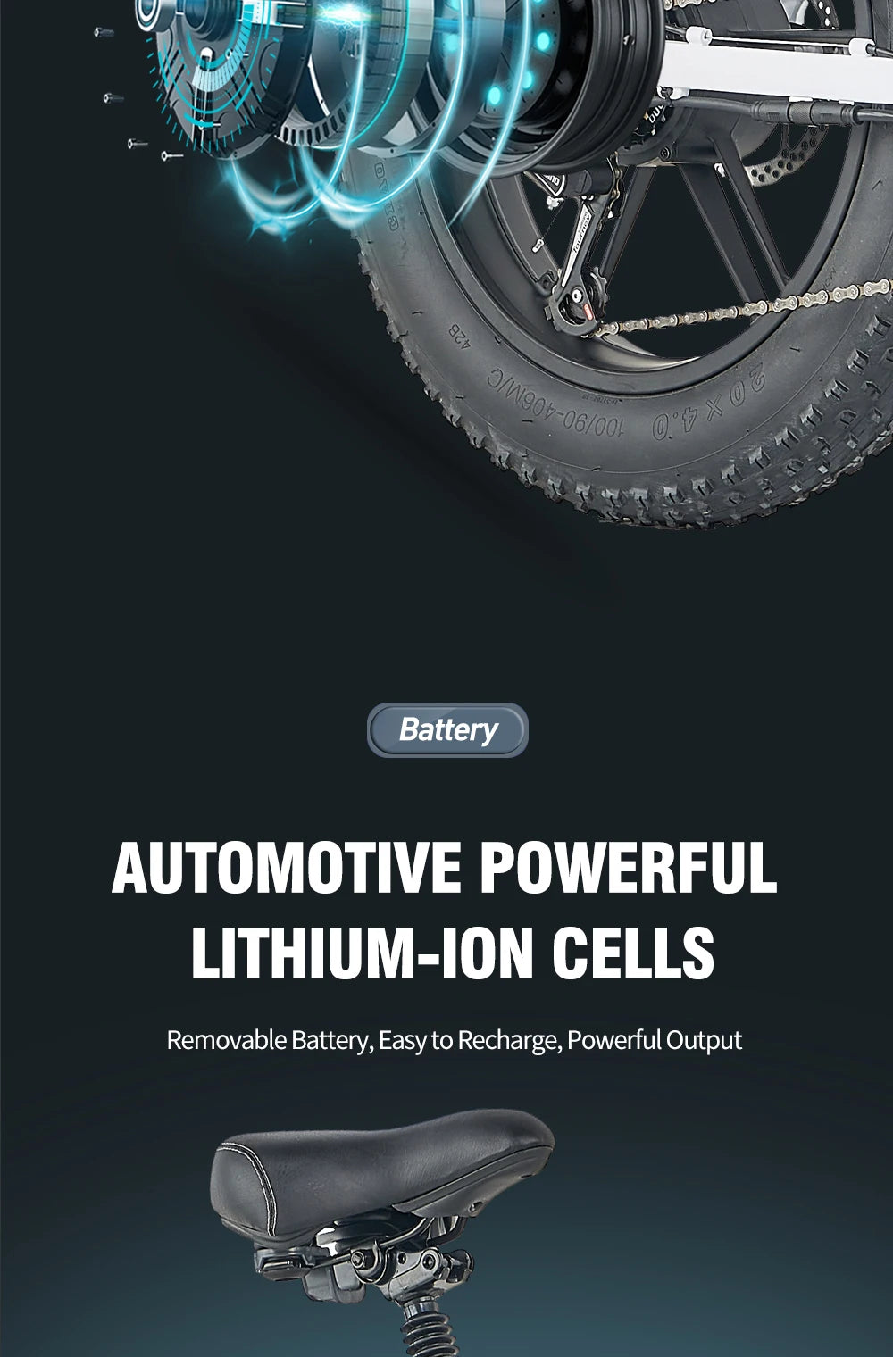 - Removable Battery: The 48V 20Ah lithium battery allows for easy charging and extended life.
