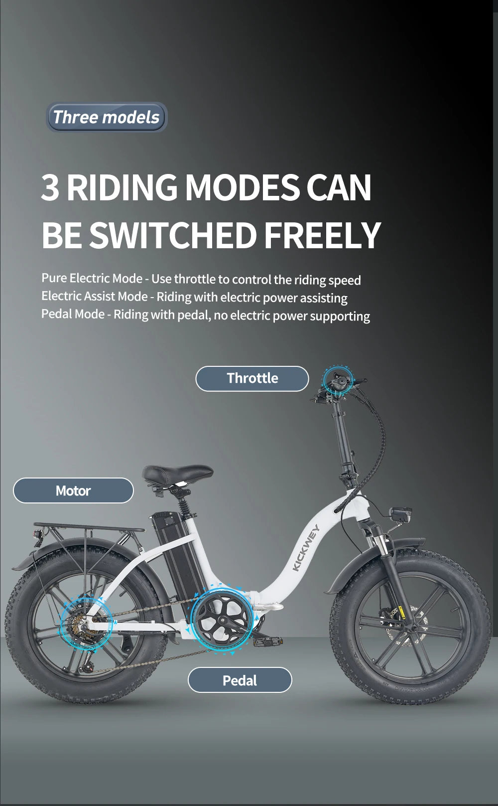 Ljustra Kickwey L20 Foldable Electric Bicycle 1000W 20 Inch Fat Tire E-Bike