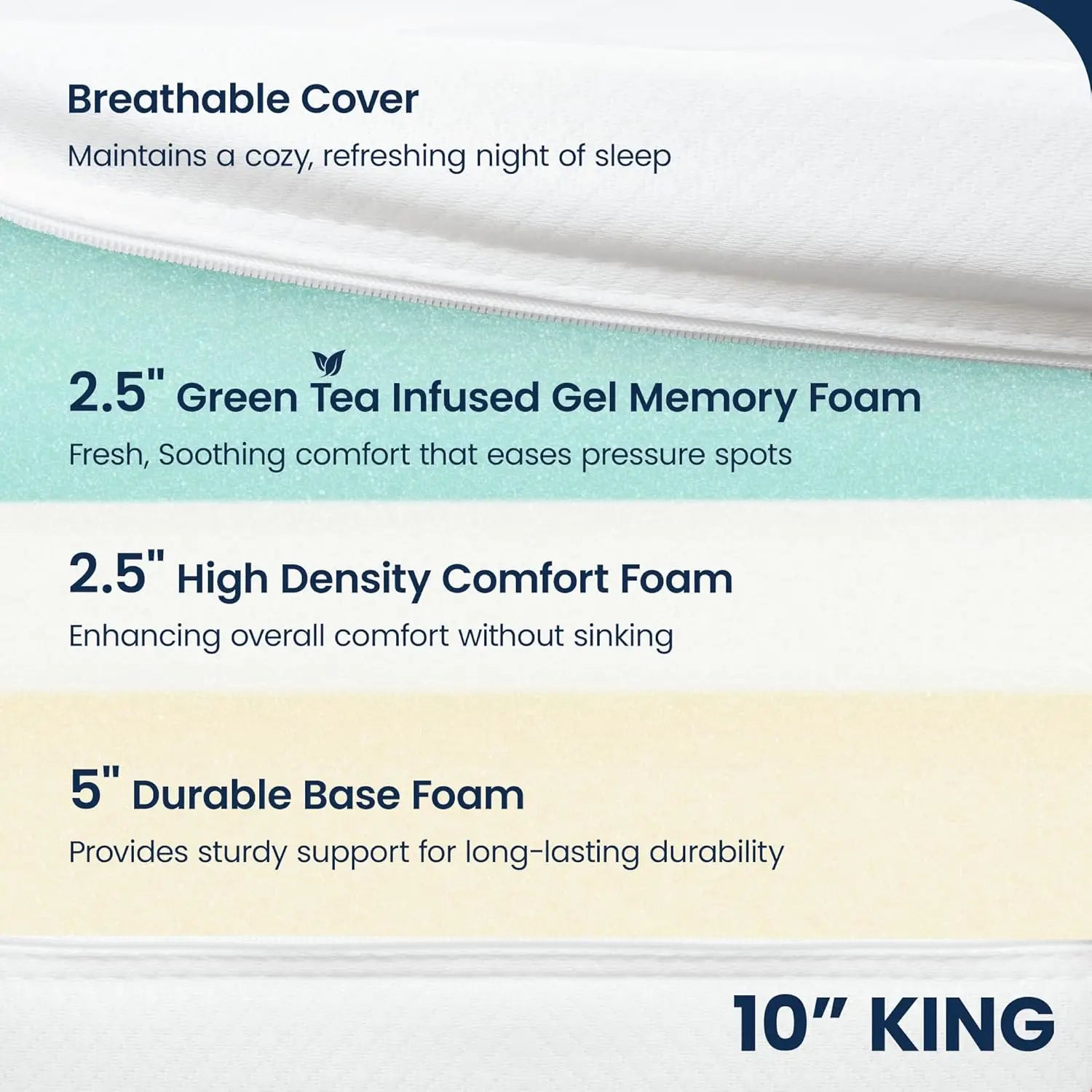 Upgrade your sleep experience with the Ljustra King Green Tea Cooling Gel Memory Foam Mattress and wake up refreshed every day!