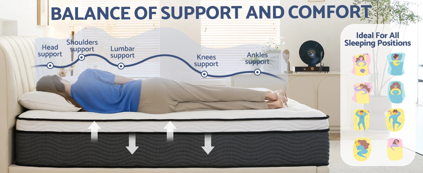 - Hybrid construction combines the best of foam and innerspring for superior comfort.