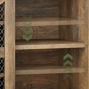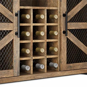 - Farmhouse Style: Features two sliding barn doors with an iron mesh design, perfect for adding a rustic charm to your kitchen or dining area.