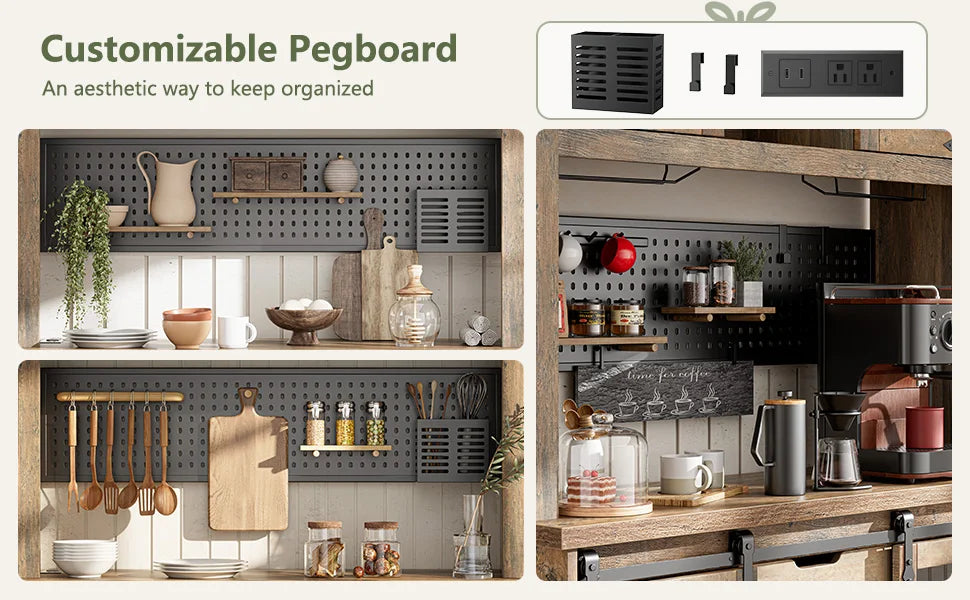 - DIY Pegboard: Customize your cabinet with included hooks and flatware organizers, allowing you to display mugs and coffee essentials in style.