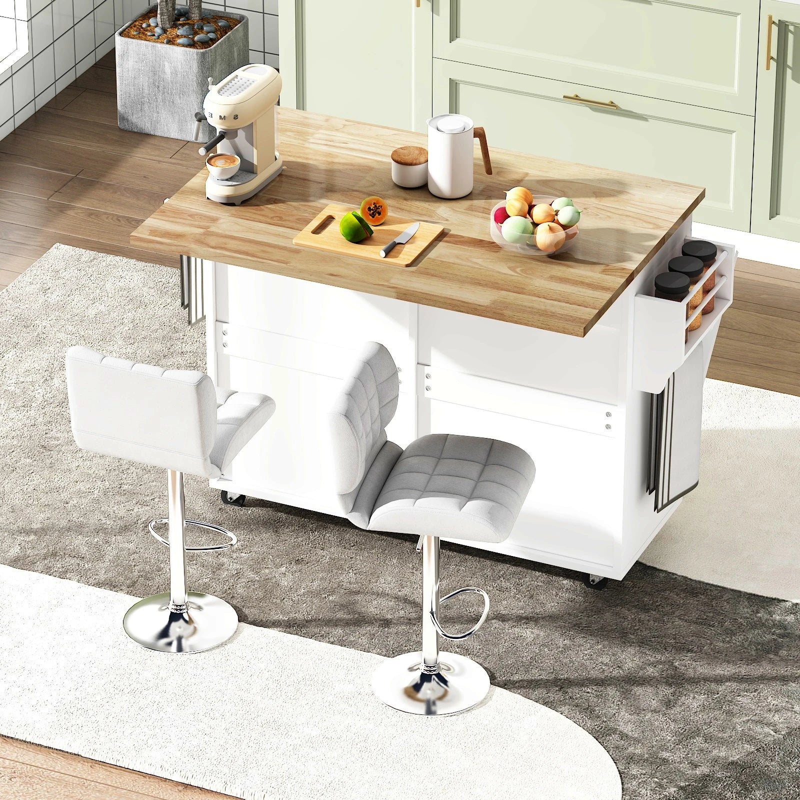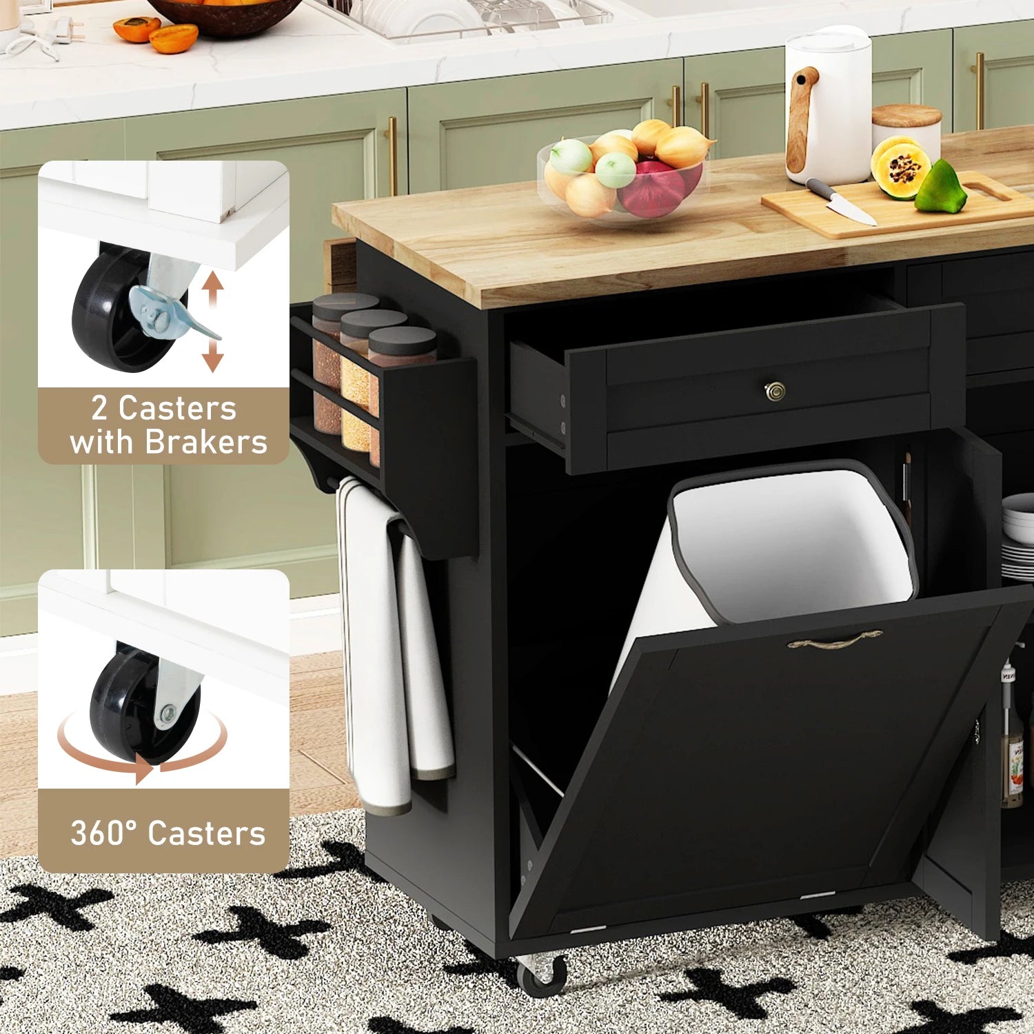 Kitchen Island with Storage Rolling Cart Drop Leaf Towel Rack