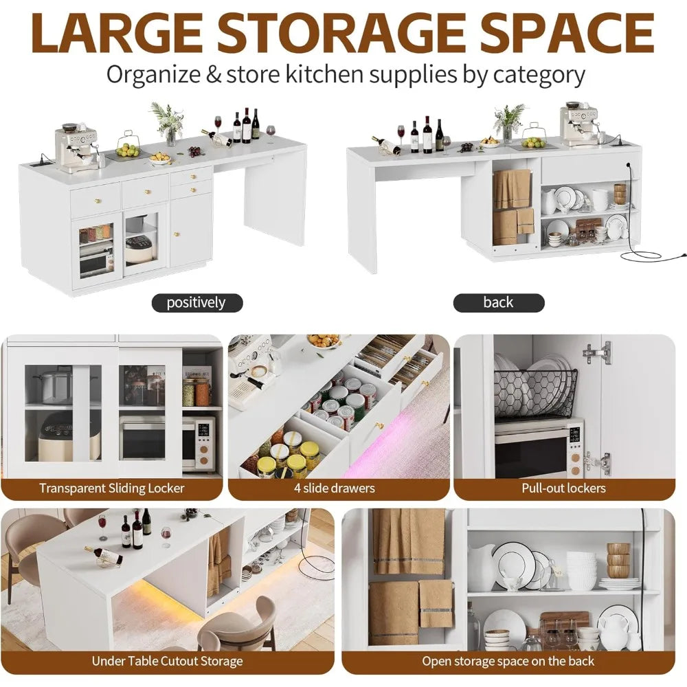 - Stunning LED Lighting: Equipped with RGB LED lights that can be controlled via remote, this kitchen island creates an inviting atmosphere with customizable lighting effects for any occasion.