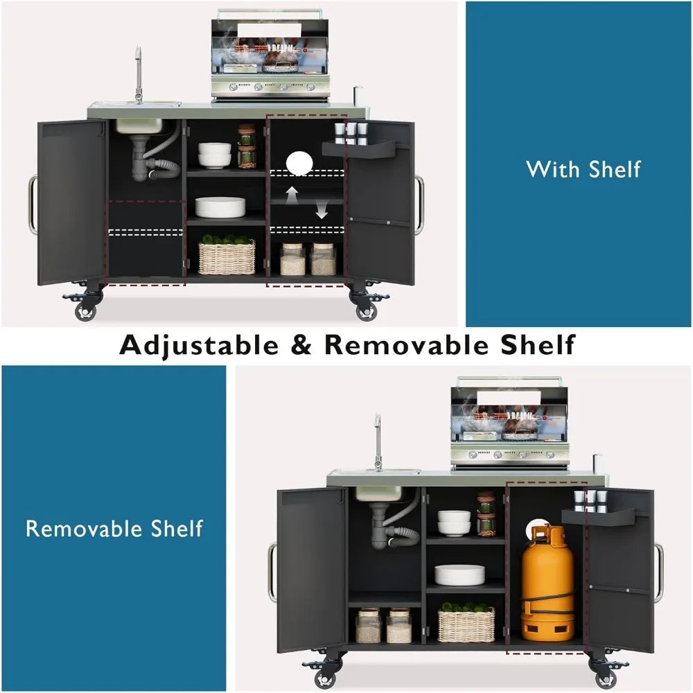 Kitchen Island Sink Metal Grill Cart 55 Inch Outdoor Bar Station