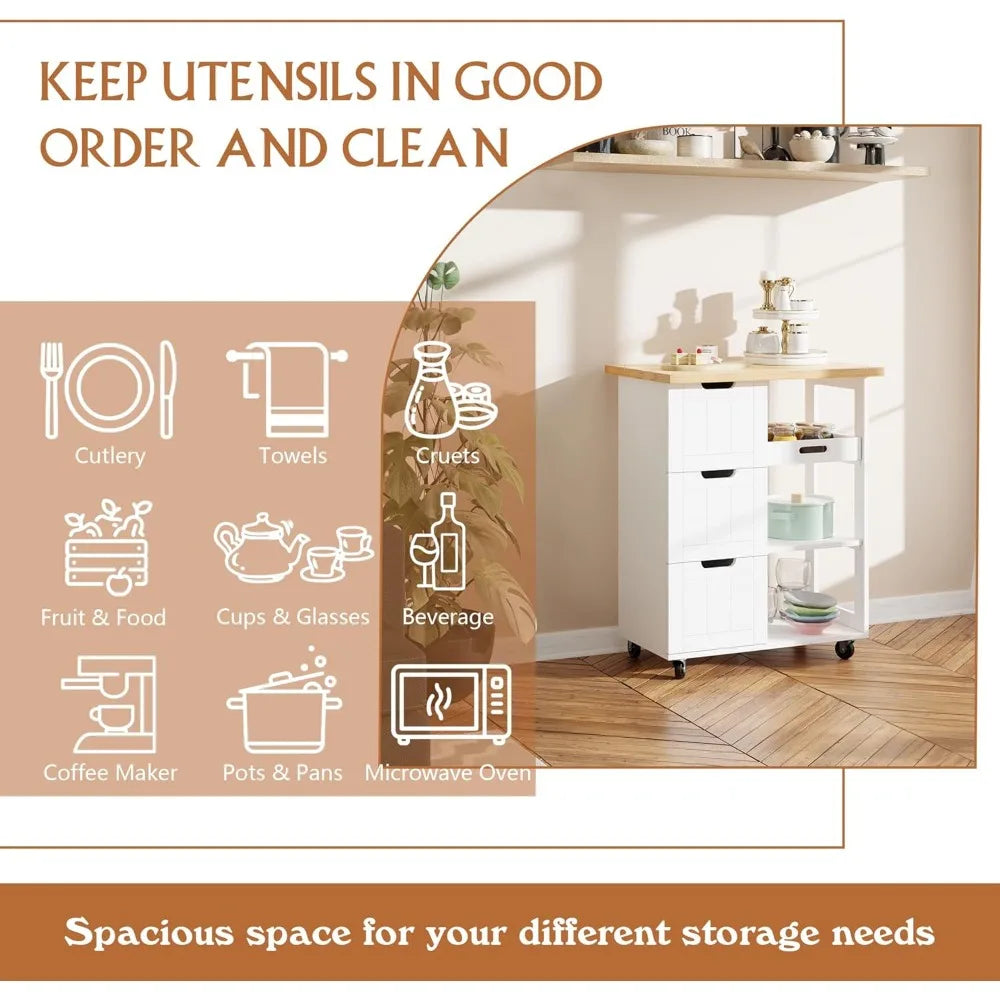 Kitchen Island Storage Cart Rolling Microwave Cart with 3 Drawers