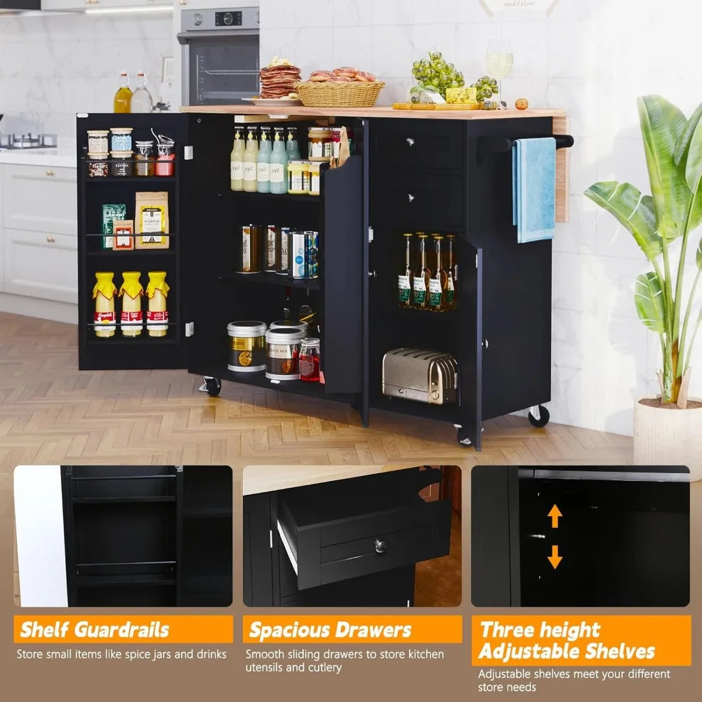 Kitchen Island on Wheels with Drop-Leaf Storage Rolling Table for Kitchen