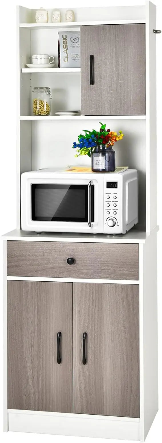 Kitchen Pantry Cabinet Buffet Hutch with Microwave Stand Adjustable Shelves