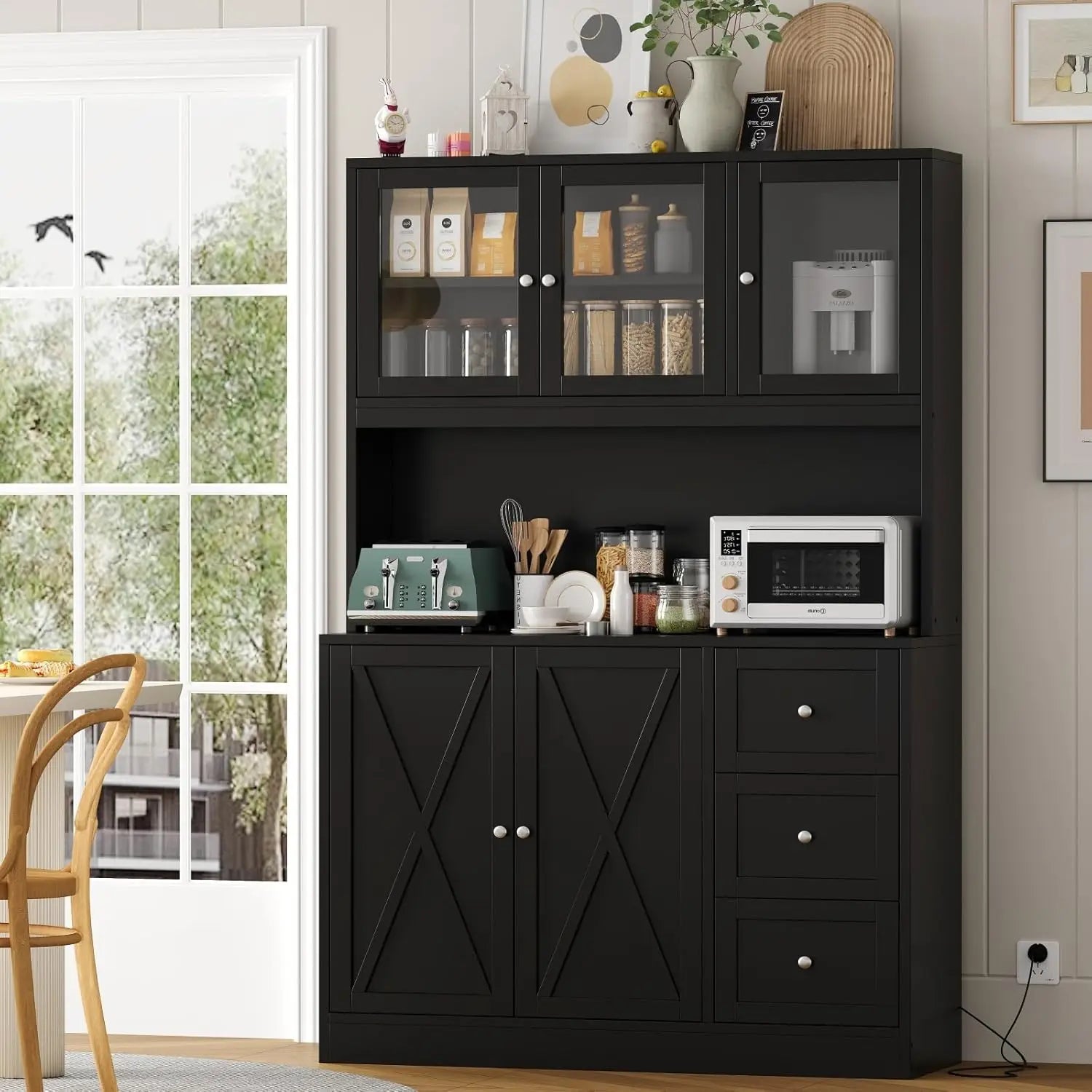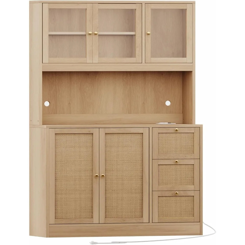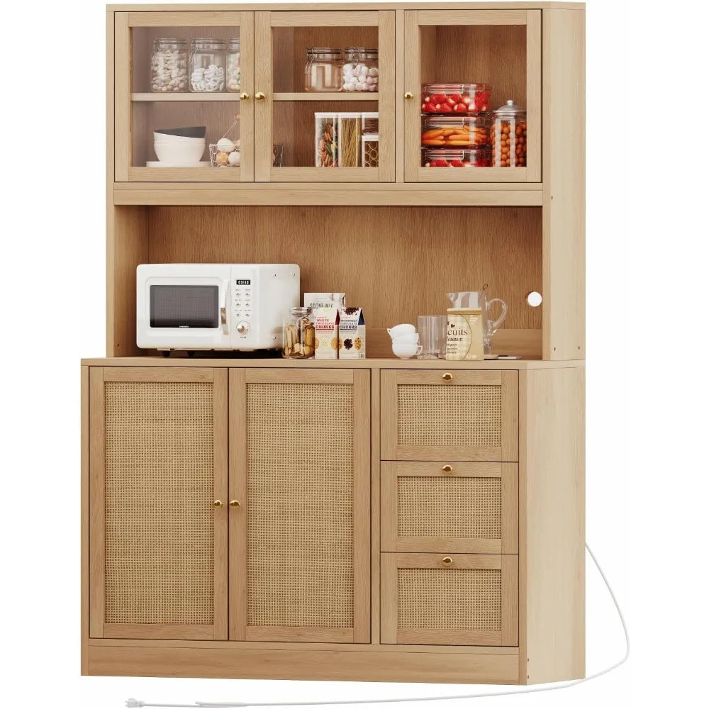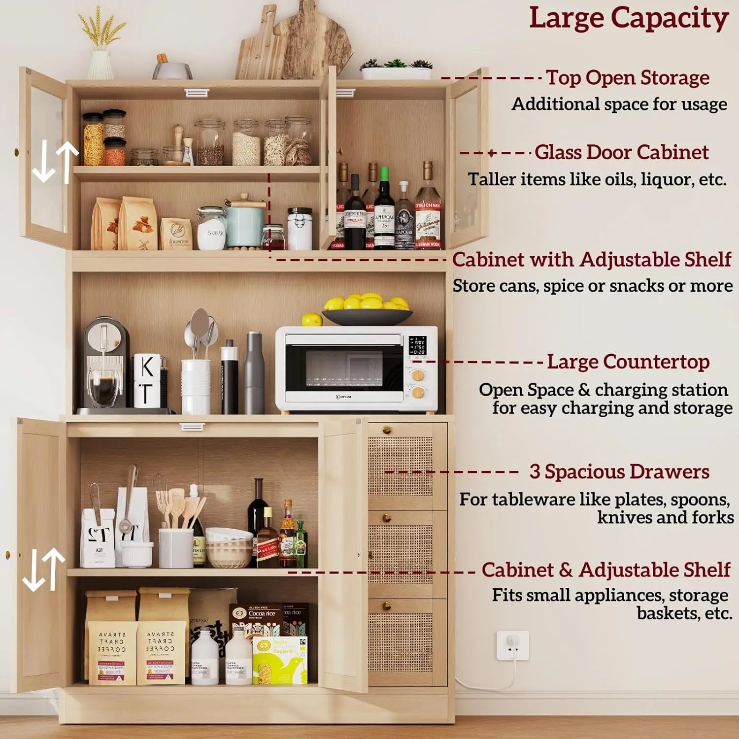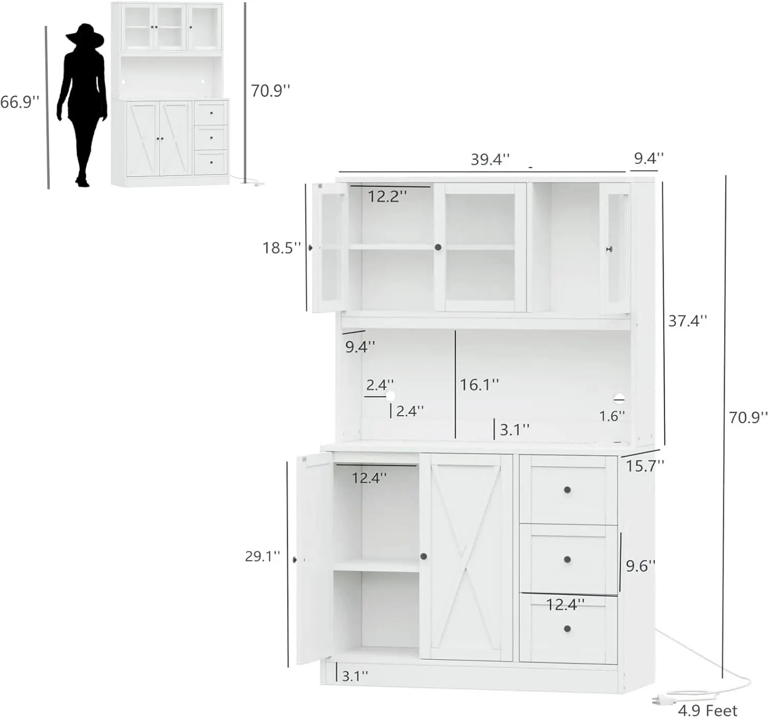Kitchen Pantry Hutch with Microwave Stand Boho Storage Cabinet