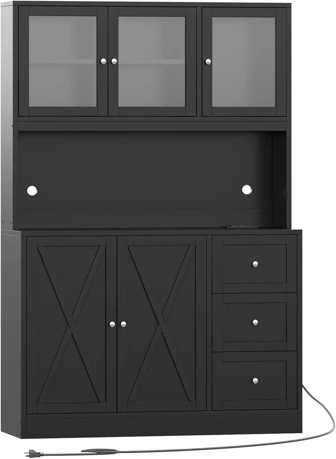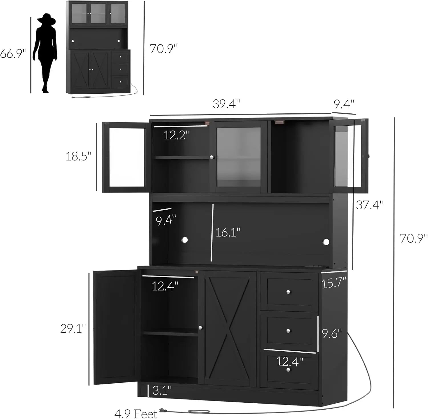 Introducing the perfect blend of style and functionality, the Ljustra Kitchen Pantry Hutch is designed to elevate your kitchen experience. This tall storage cabinet not only acts as a microwave stand but also features a charging station, making it an essential addition to your modern home.