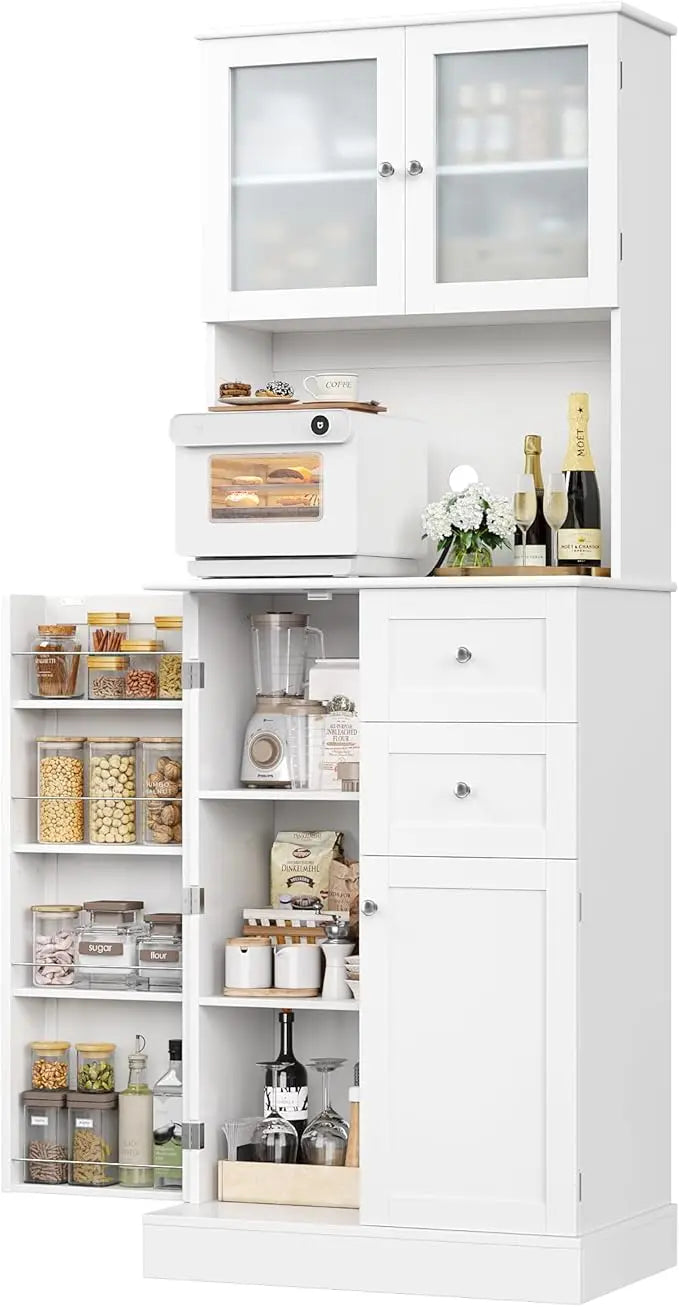 Kitchen Pantry Storage Cabinet Modern Hutch with Doors Shelves Drawers