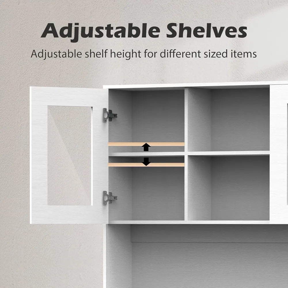 Upgrade your kitchen organization with our multi-functional farmhouse storage cabinet. Standing at 71 inches tall, this versatile hutch combines a built-in power outlet with a microwave stand and spacious storage, making it perfect for any kitchen, dining area, or living room.
