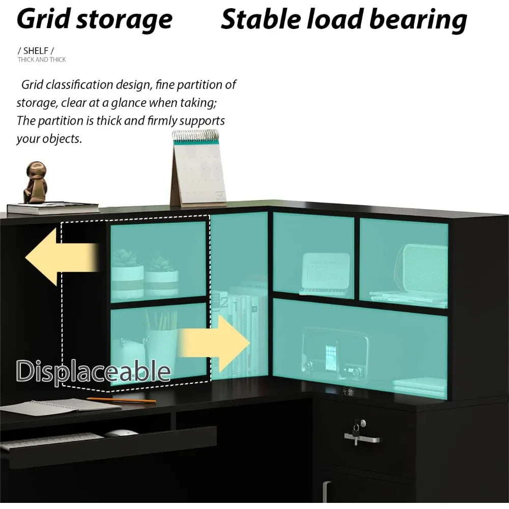 - L-Shaped Design: Perfectly fits into corners to maximize your office space.