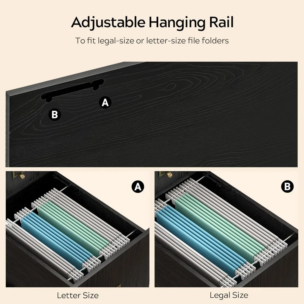- Adjustable Hanging Rail: Organize both legal and letter-size files easily with adjustable rods in the file drawer.